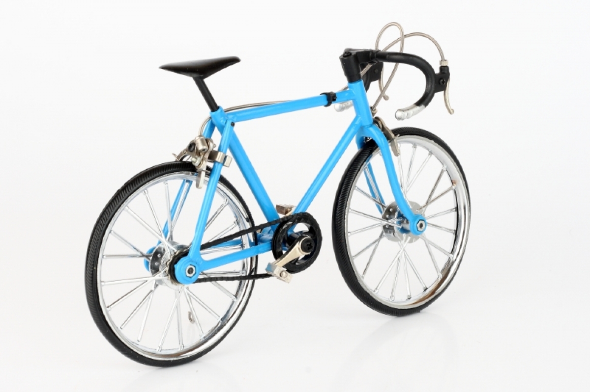 Vo všetkych detailoch prepracovaný model bicykelu v modrej farbe.