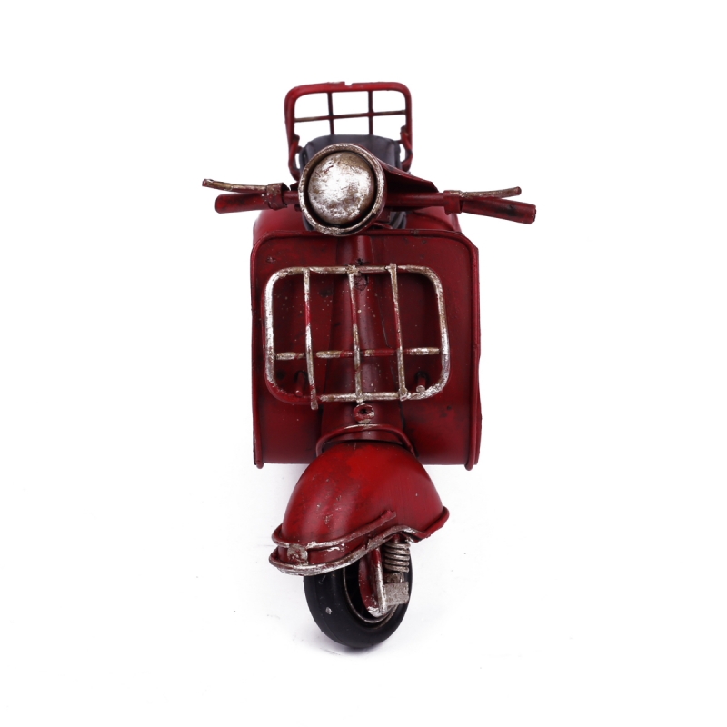 Tento kovový retro model skútra má krásnu temne červenú farbu, ktorá Vás zaujme na prvý pohled.Model je veľmi pekne prepracovaný. Vďaka praktickému stojančeku ho umiestnite kamkoľvek budete chcieť.