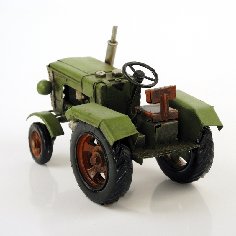 Traktor je vyroben z kovových částí a plechu. Pouze imitace pneumatik je vyrobena z pryže. Traktor má otáčecí kola a tak umožňuje jízdu vpřed a vzad.