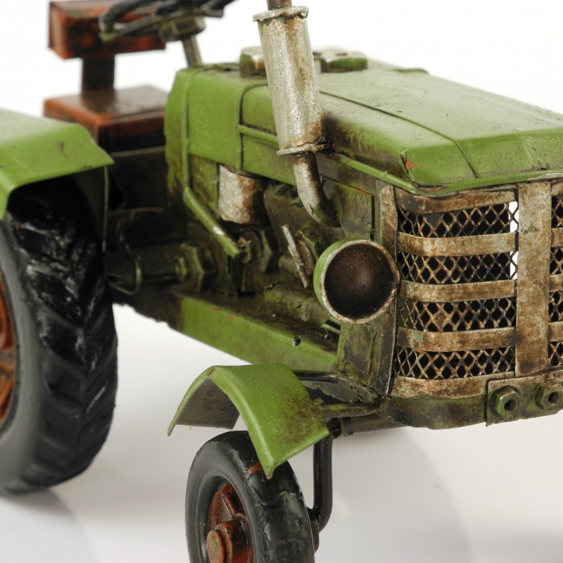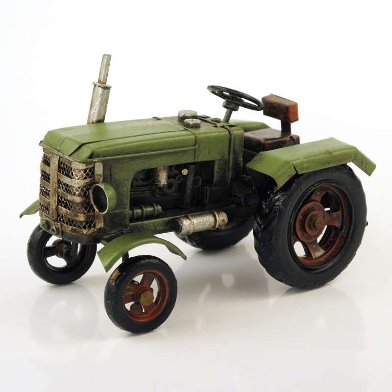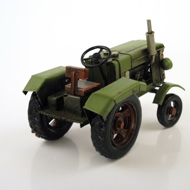 Retro model traktor zelený plechový 16cm, je ručně vyráběný.