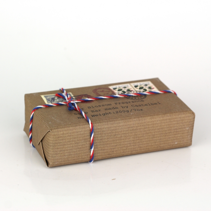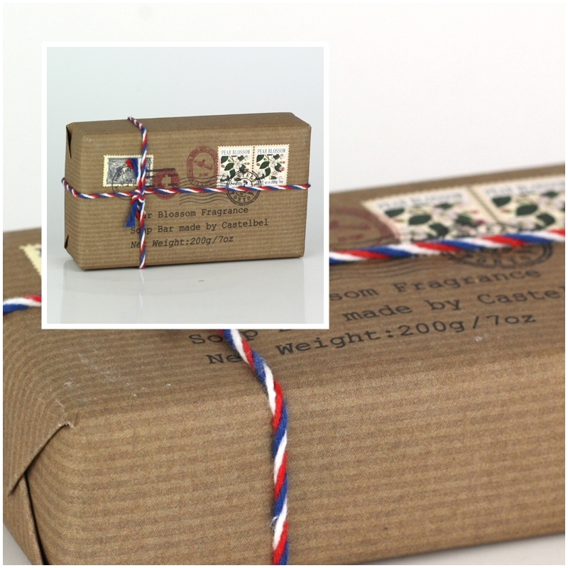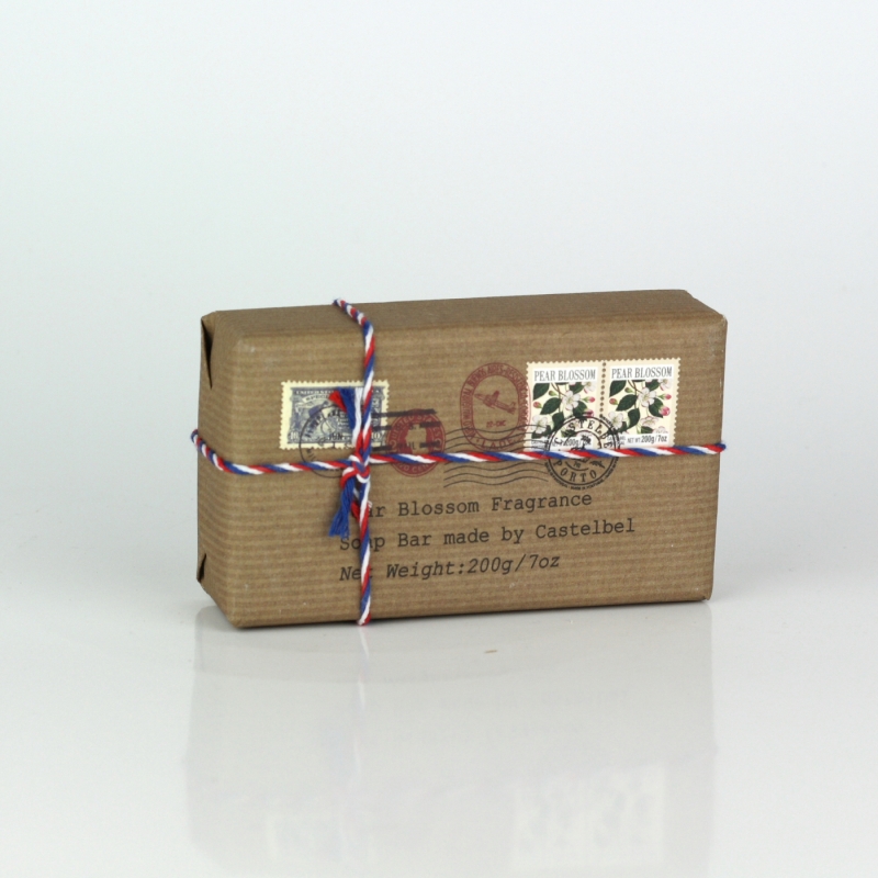 Retro mydlo hruškový kvet 200g vyzerá, ako poštový balík so známkami a pečiatkami. Nápaditý dizajn zaujme a poteší všetkých milovníkov retro štýlu.