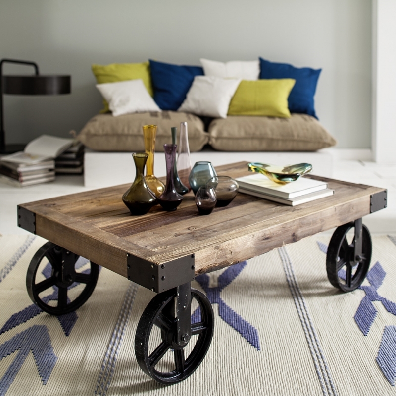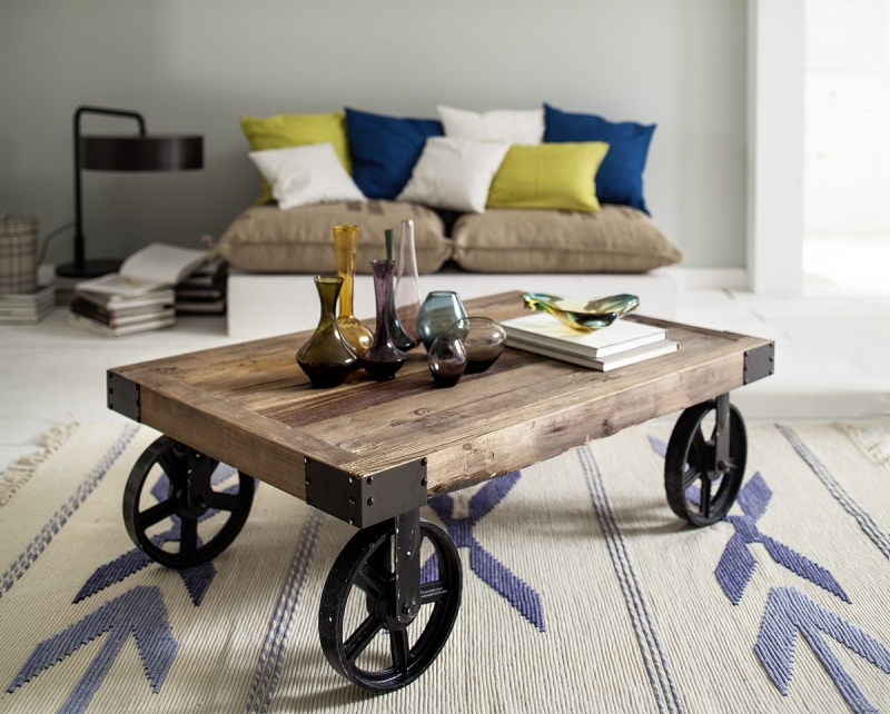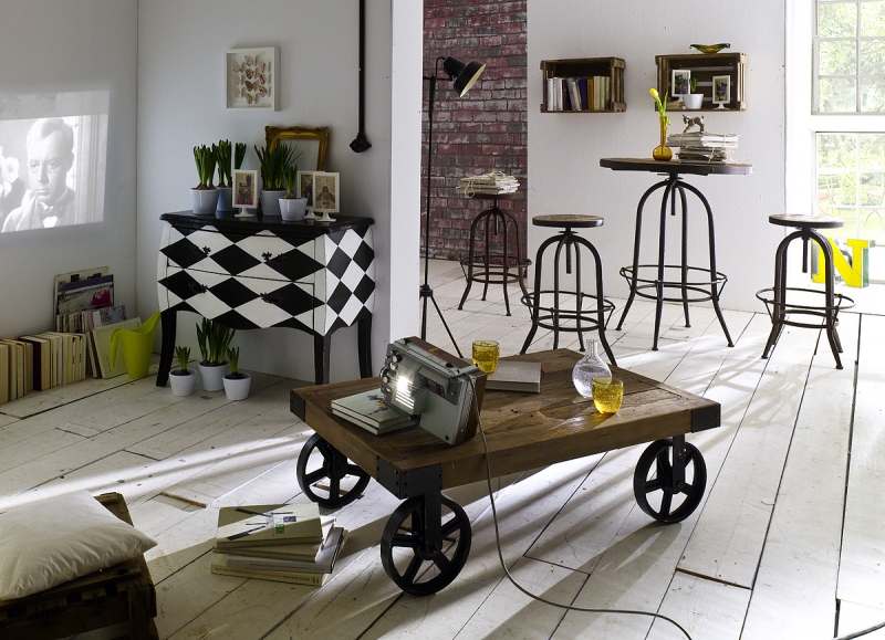 Retro nábytok je dominantou interiéru. Tento konferenčný stolík na kolesách o rozmeroch 135x35x75cm