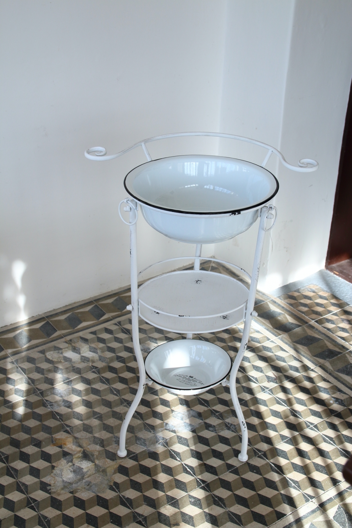 Súčasťou balenia sú väčšie aj menšie smaltované umývadlo na vloženie do stojana.