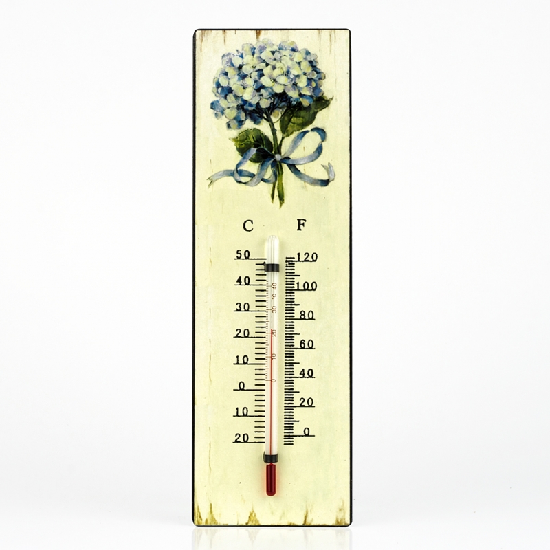 Nástenný retro teplomer hortenzia 9x25cm