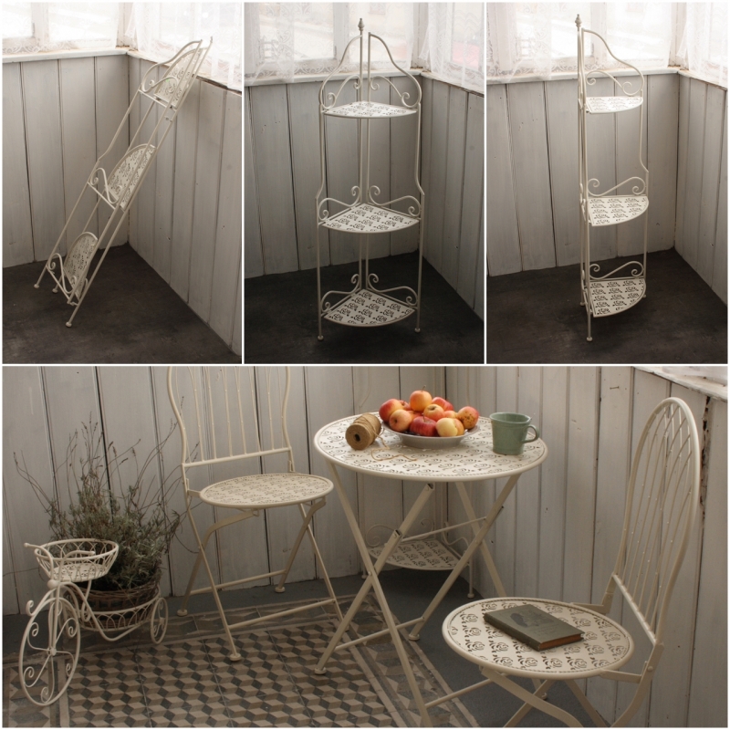 Kovový regál má police zdobené motívom ruží. Biela farba mu navyše dodáva na eleganciu.