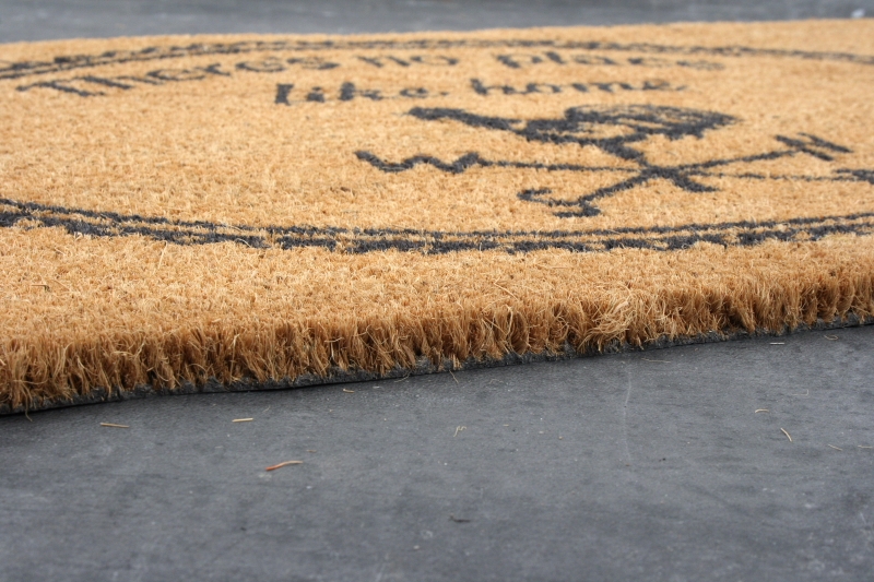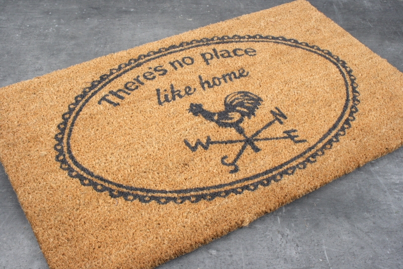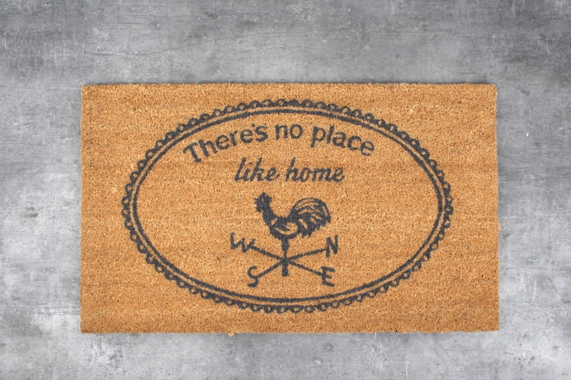 Praktická rohožka do dlažby z kokosového vlákna s ozdobným medailonkem, motivem korouhvičky a nápisem Theres no place like a home.