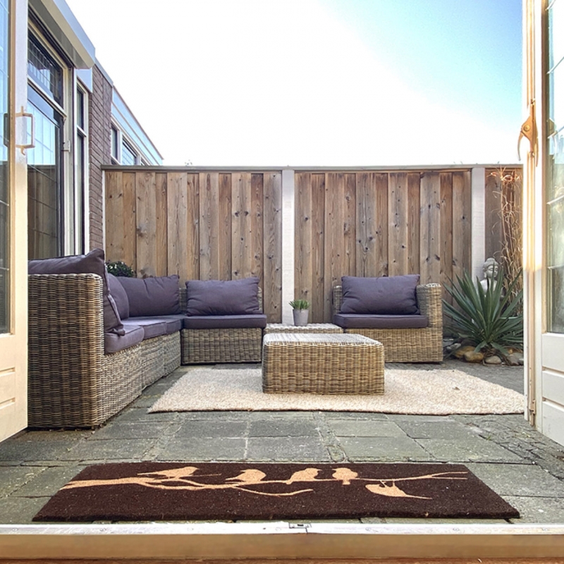 Ak radi sedávate na schodoch na terasu, popíjate kávu a kocháte sa pohľadom do záhrady, môžete rohožka využiť aj ako šikovný záhradný podsedák na studenej schody.