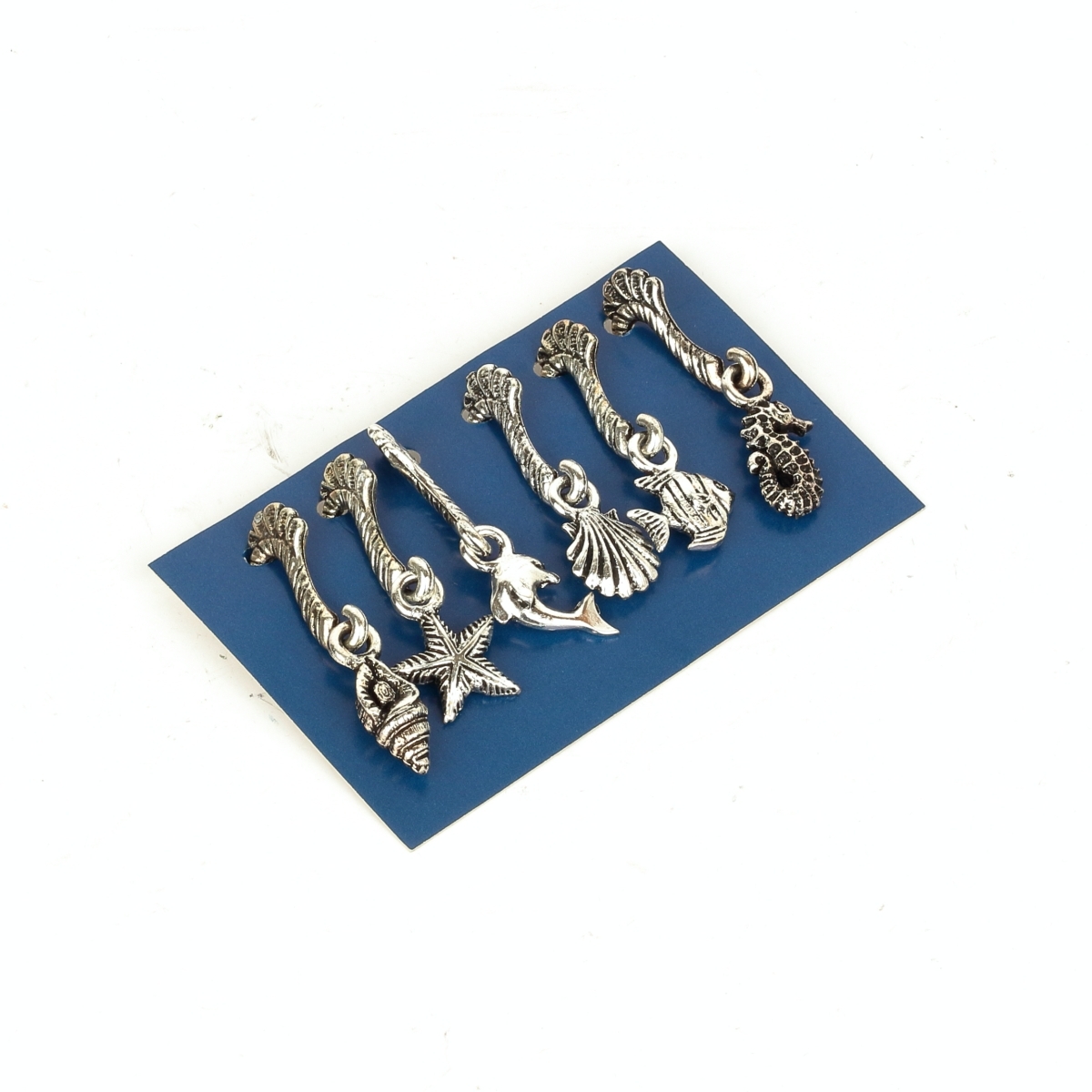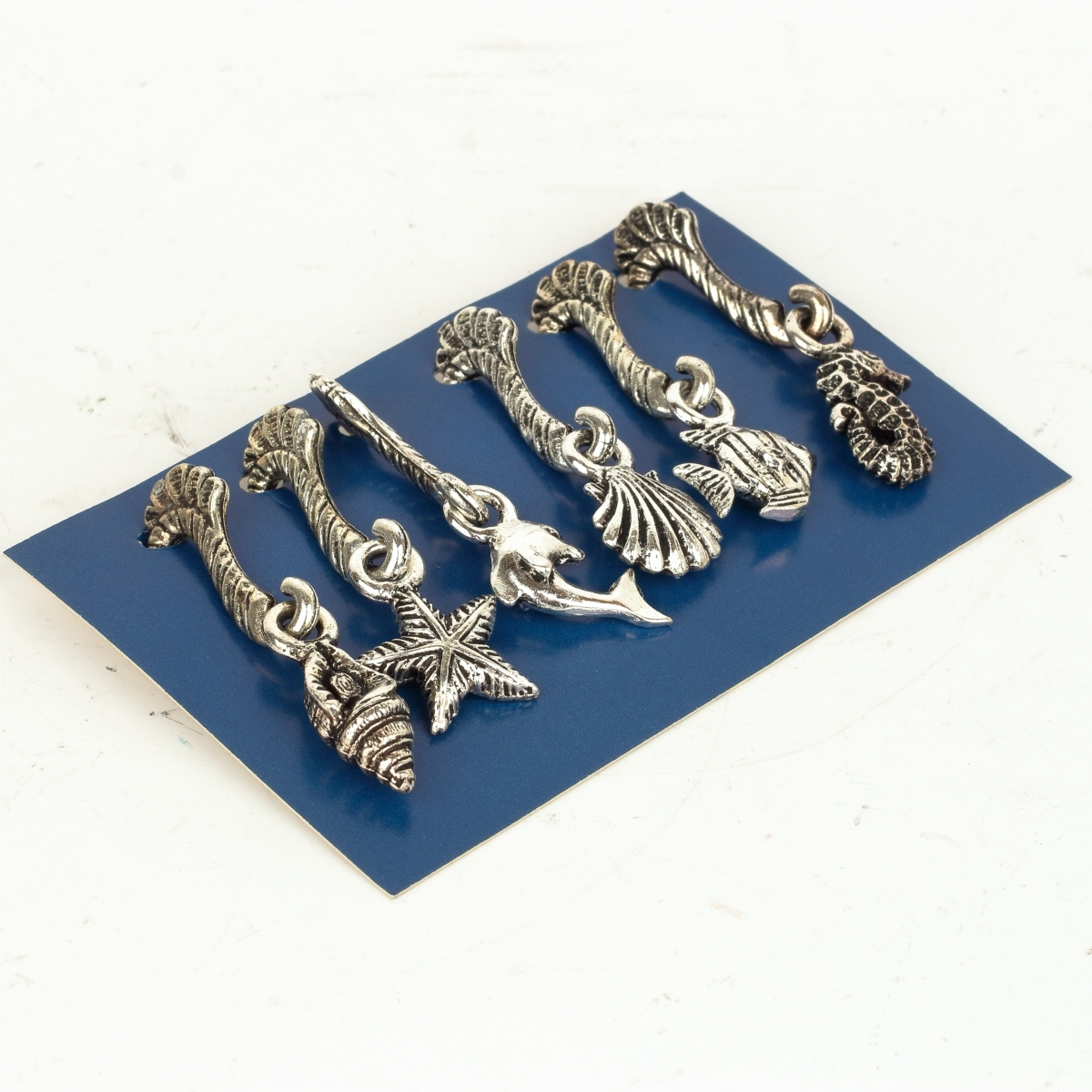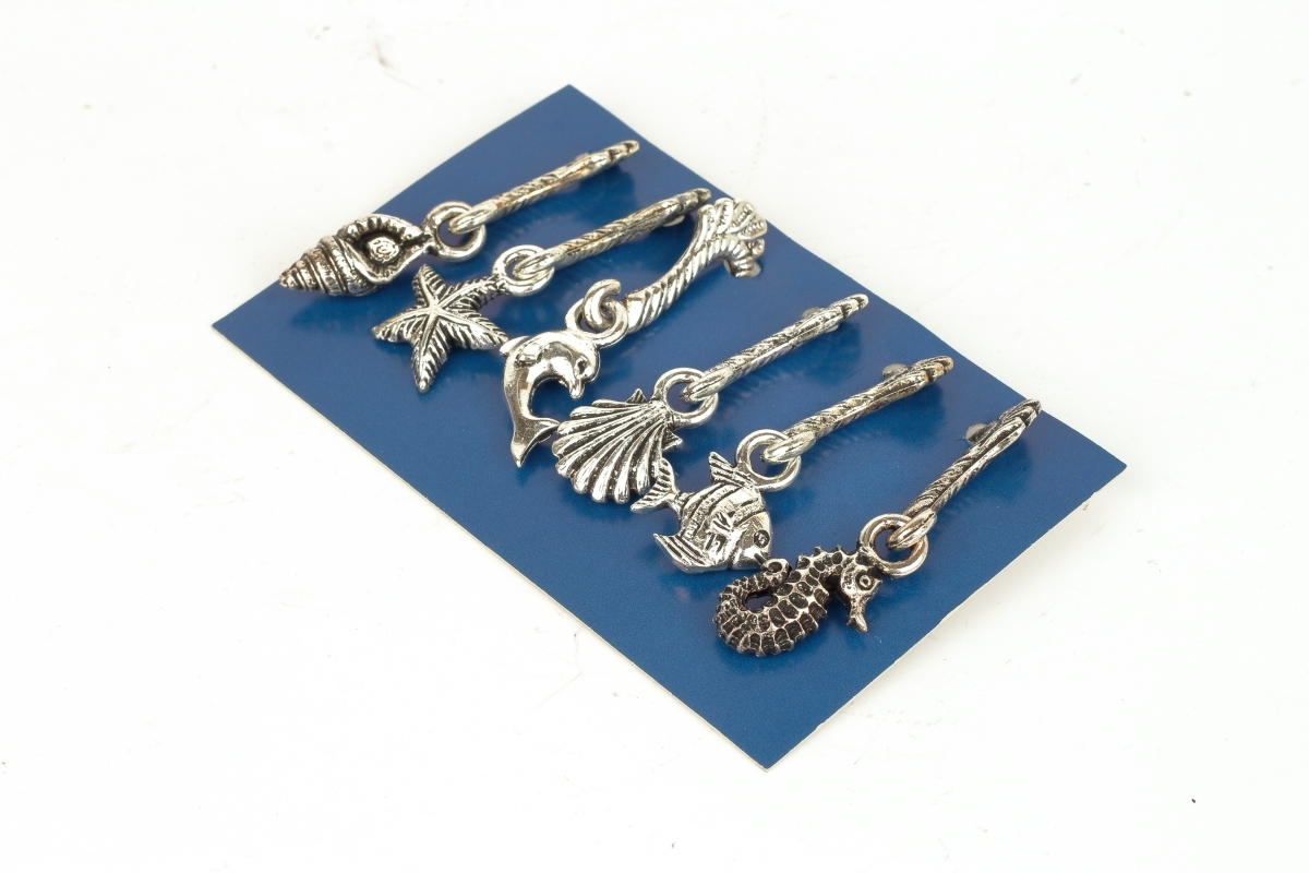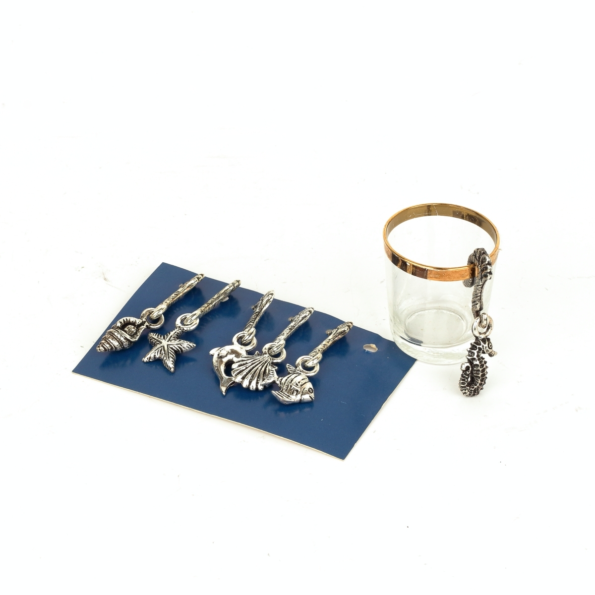 Rozlišovače na poháre morské motívy, súprava 6 kusov - závesné kovové