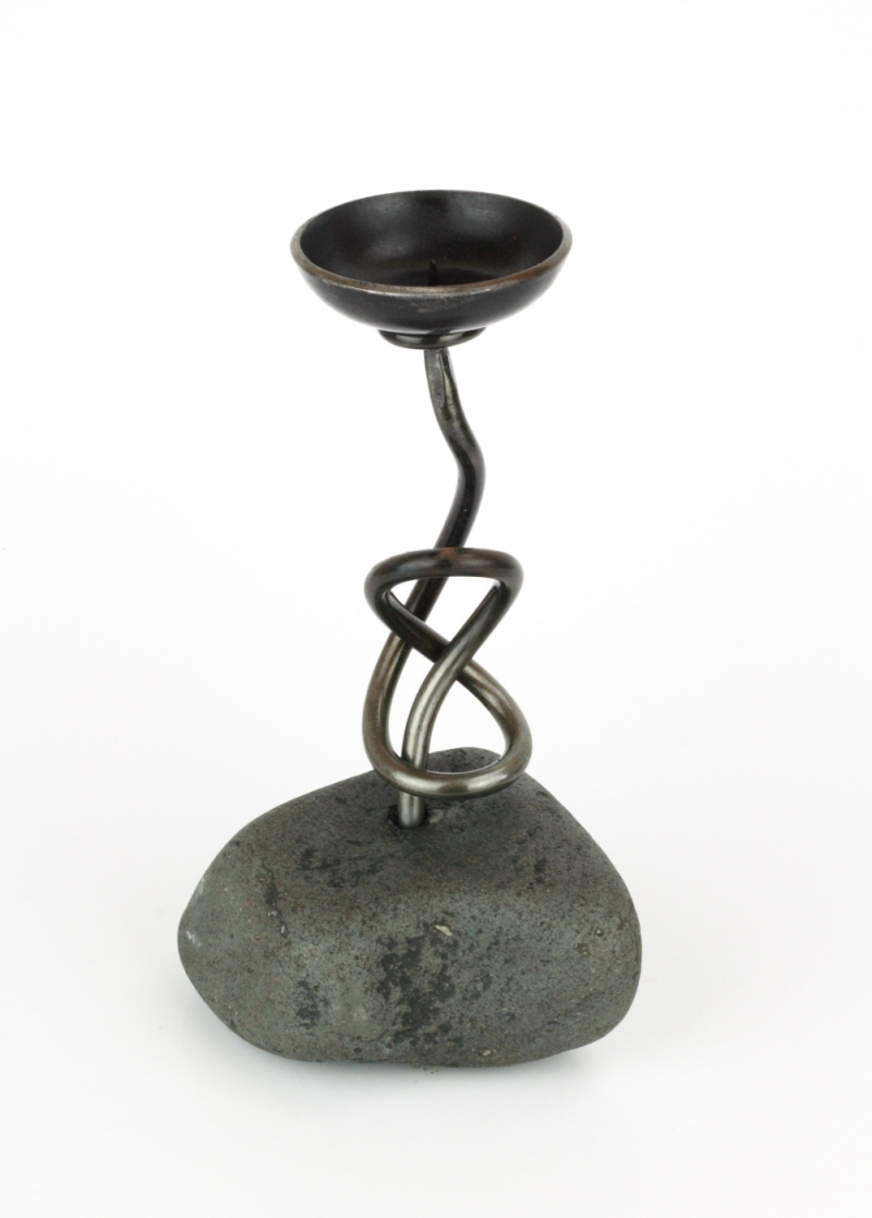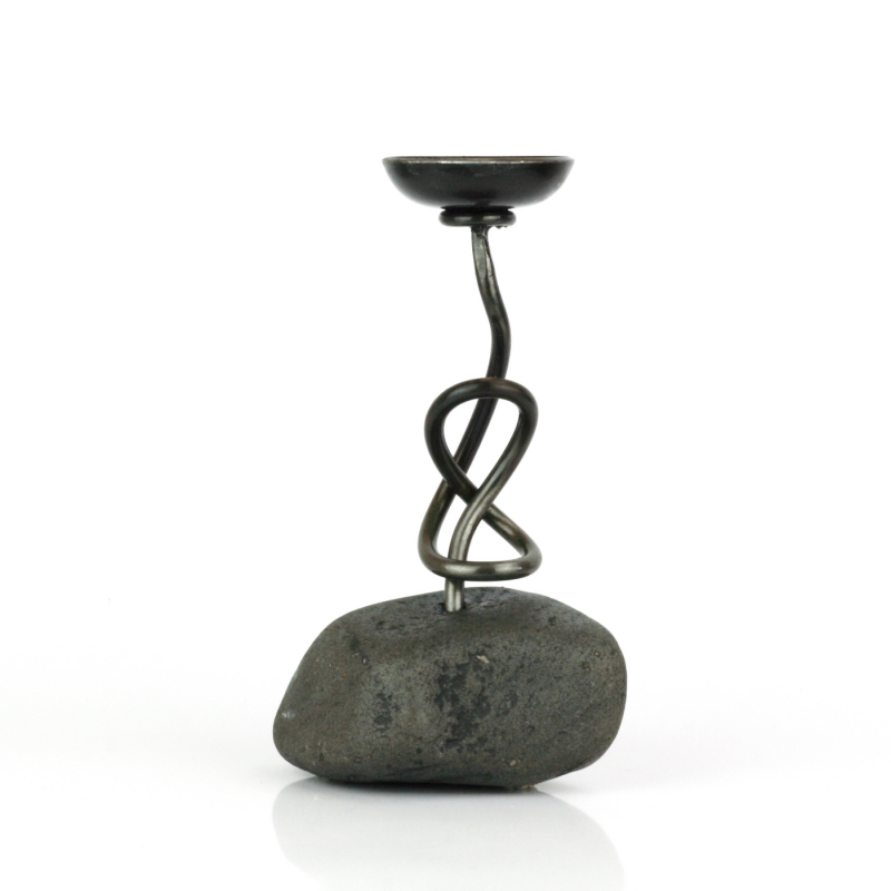 Ručne kovaný svietnik prepletenec tmavý kameň 22cm