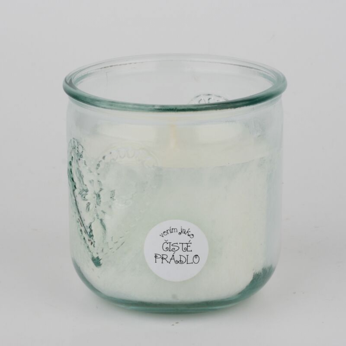 Ručne odlievaná sviečka v pohári čisté prádlo 480g