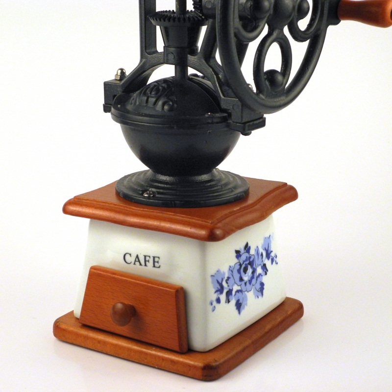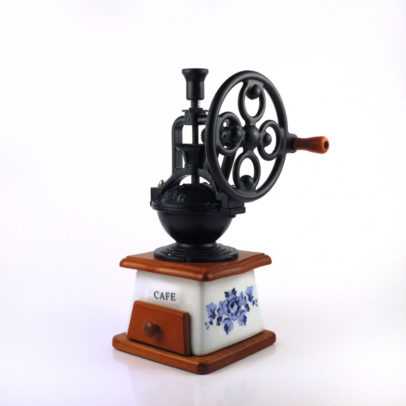 Ručný mlynček na kávu porcelán s kolesom