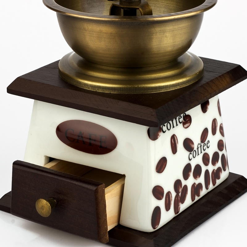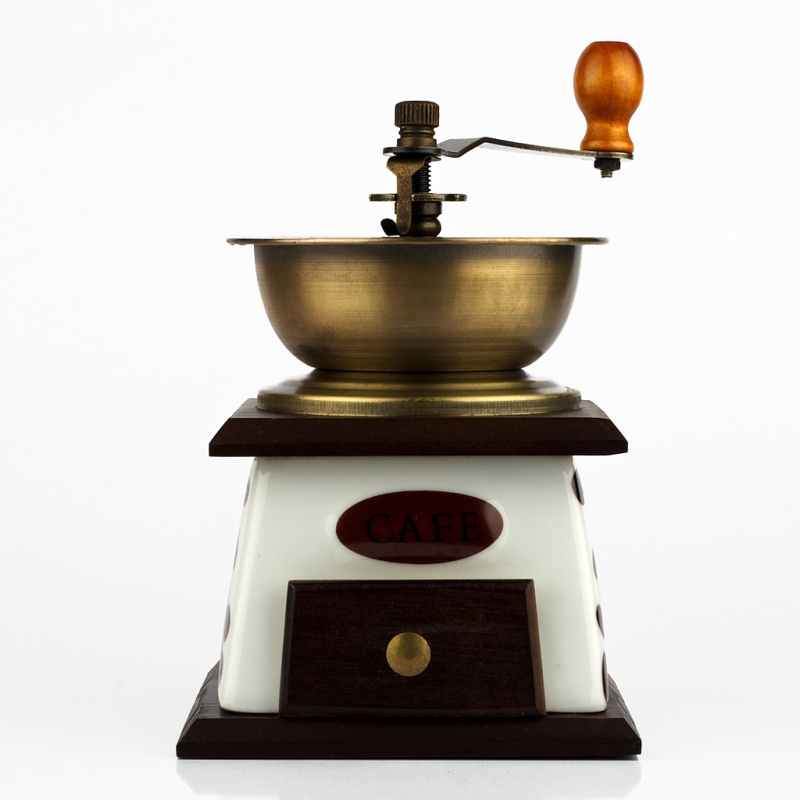 Plně funkční replika starého mlýnku na kávu. I přesto, že se jedná o repliku mlýnku na kávu, je mlýnek opatřen plně funkčním strojkem na jemné mletí kávy.