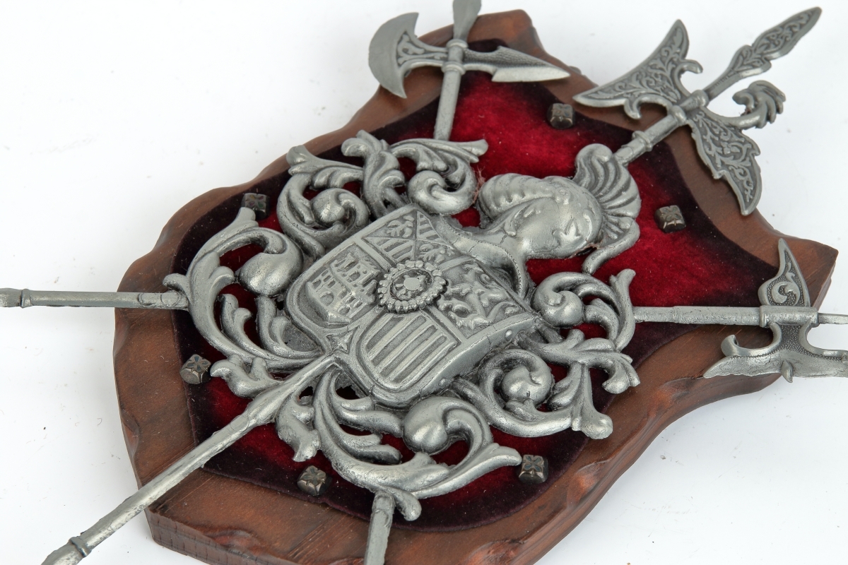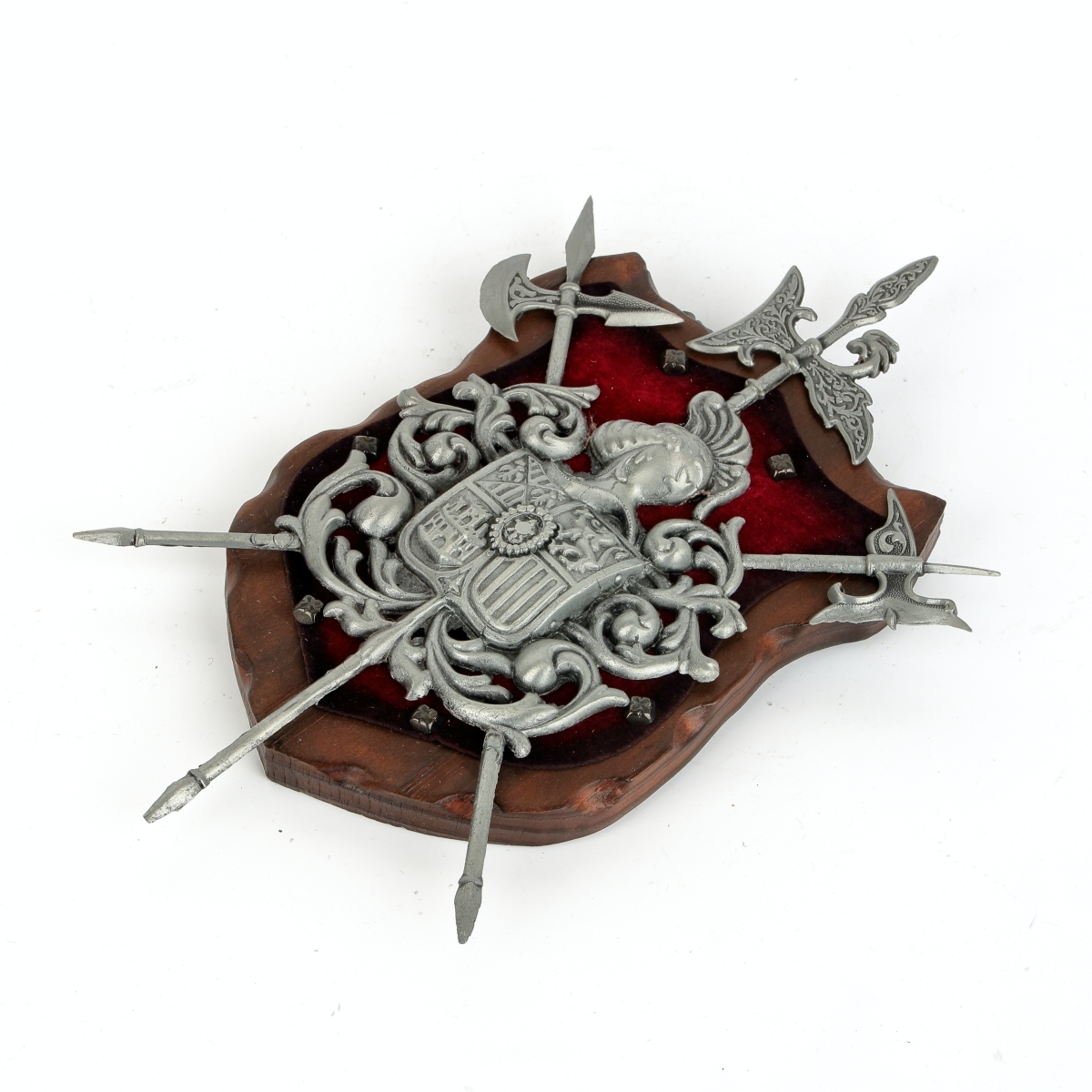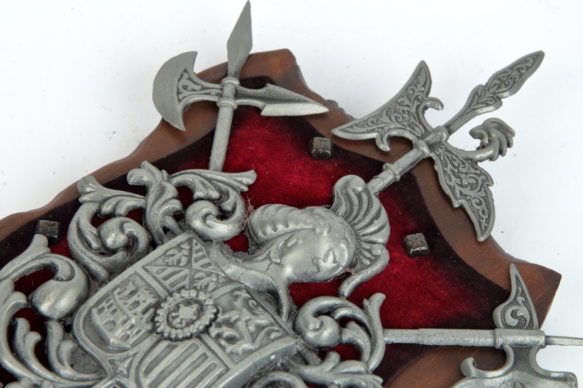 erb na dřevě s červeným sametem - v provedení z šedého kovu