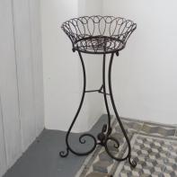Celokovový stolík má namiesto klasickej odkladacie plochy kovový kôš / misu, do ktorej môžete naaranžovať kvetináč s rastlinami alebo suchú väzbu.
