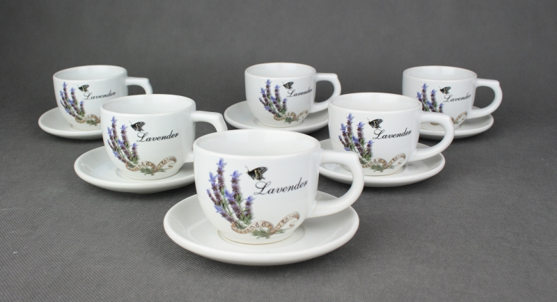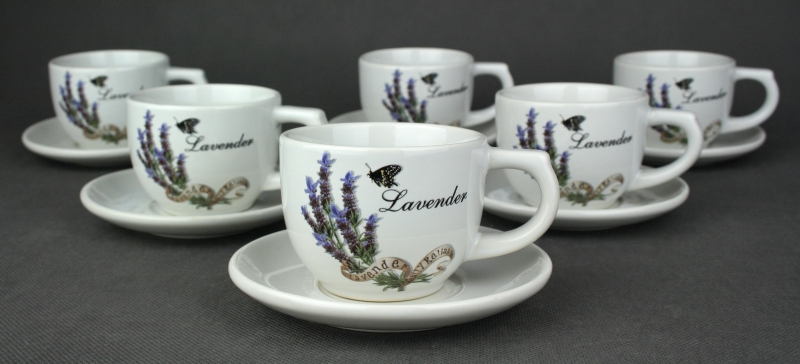 Šálky s oblíbeným motívom levandule. Sada šálky s podšálkou vnesie do každej kuchyne kúsok vidieka. Veľmi pekne spracovaný set Vám umožní vychutnať si šálku obľúbeného čaju či kávy zo štýlového hrnčeka.