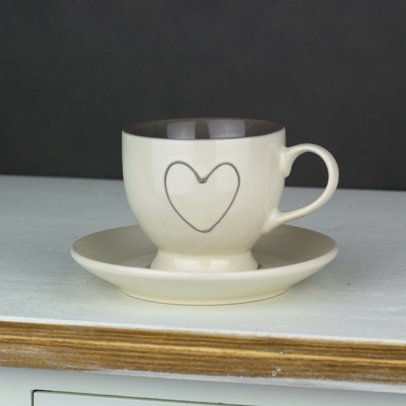 Šálka s tanierikom krémovej srdce 200ml urobí z každej obyčajné chvíľky príjemný zážitok s šálkou dobrej kávy alebo čaju.