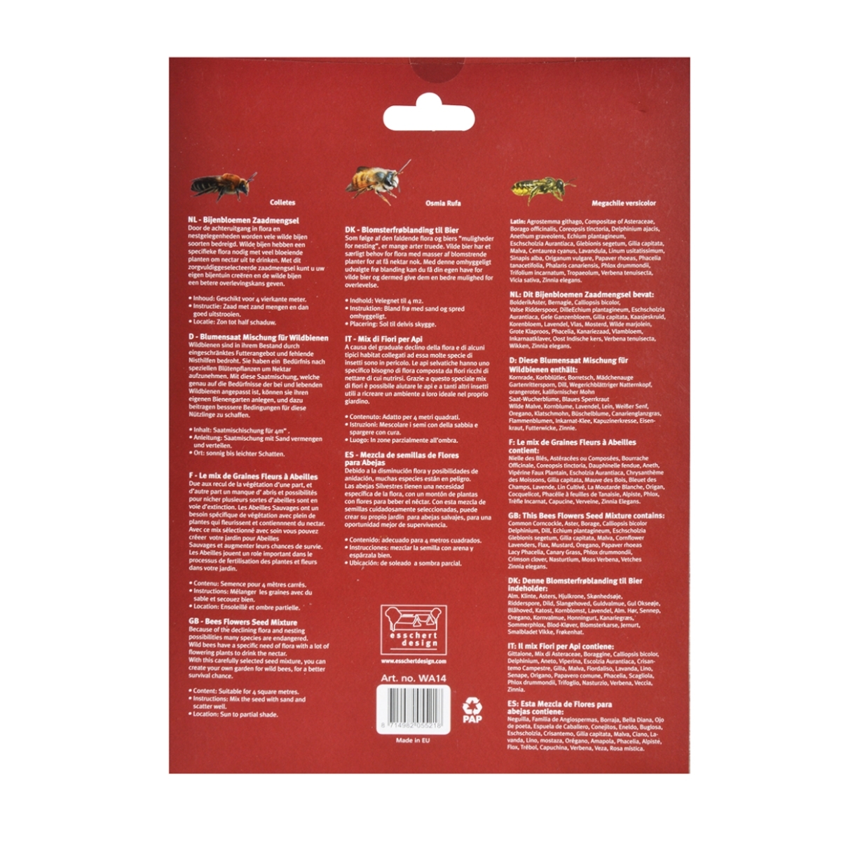 Kvôli ubúdajúcej flóre a hniezdnym možnostiam je mnoho druhov ohrozených. Divoké včely majú špecifickú potrebu flóry s množstvom kvitnúcich rastlín, aby píli nektár. Vďaka tejto starostlivo vybranej zmesi semien sú včely priťahované do záhrady a majú väčšiu šancu na prežitie.