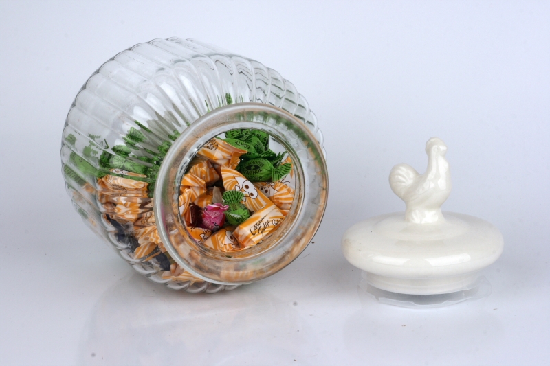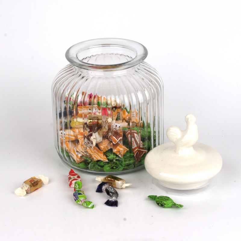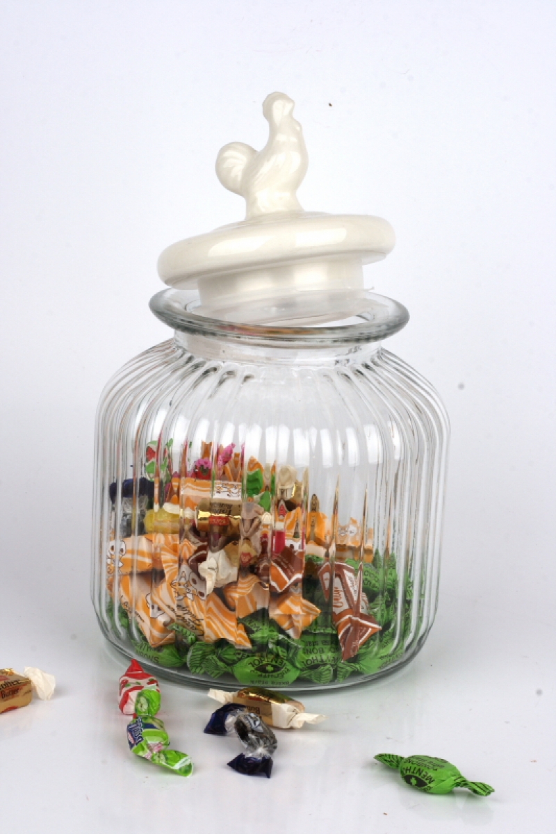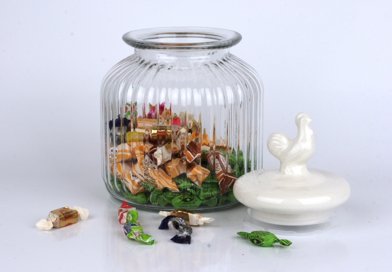 Sklenená dóza na cukríky s kohútom 17x25cm