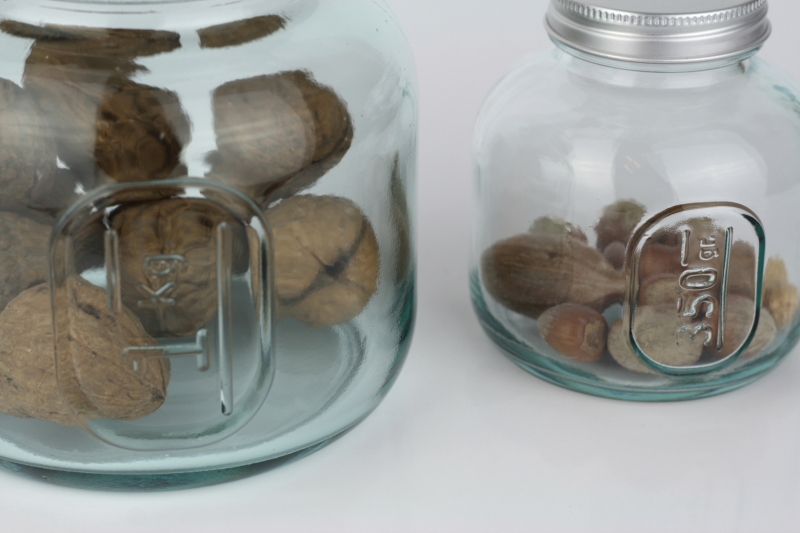 Dóza je vyrobená zo 100% recyklovaného liateho skla v španielskej sklárni San Miguel. V rovnakom dizajne nájdete v ponuke veľa ďalších doplnkov do kuchyne. Môžete tak štýlovo vyriešiť ukladanie potravín a zároveň vyladiť kuchyňu k dokonalosti.