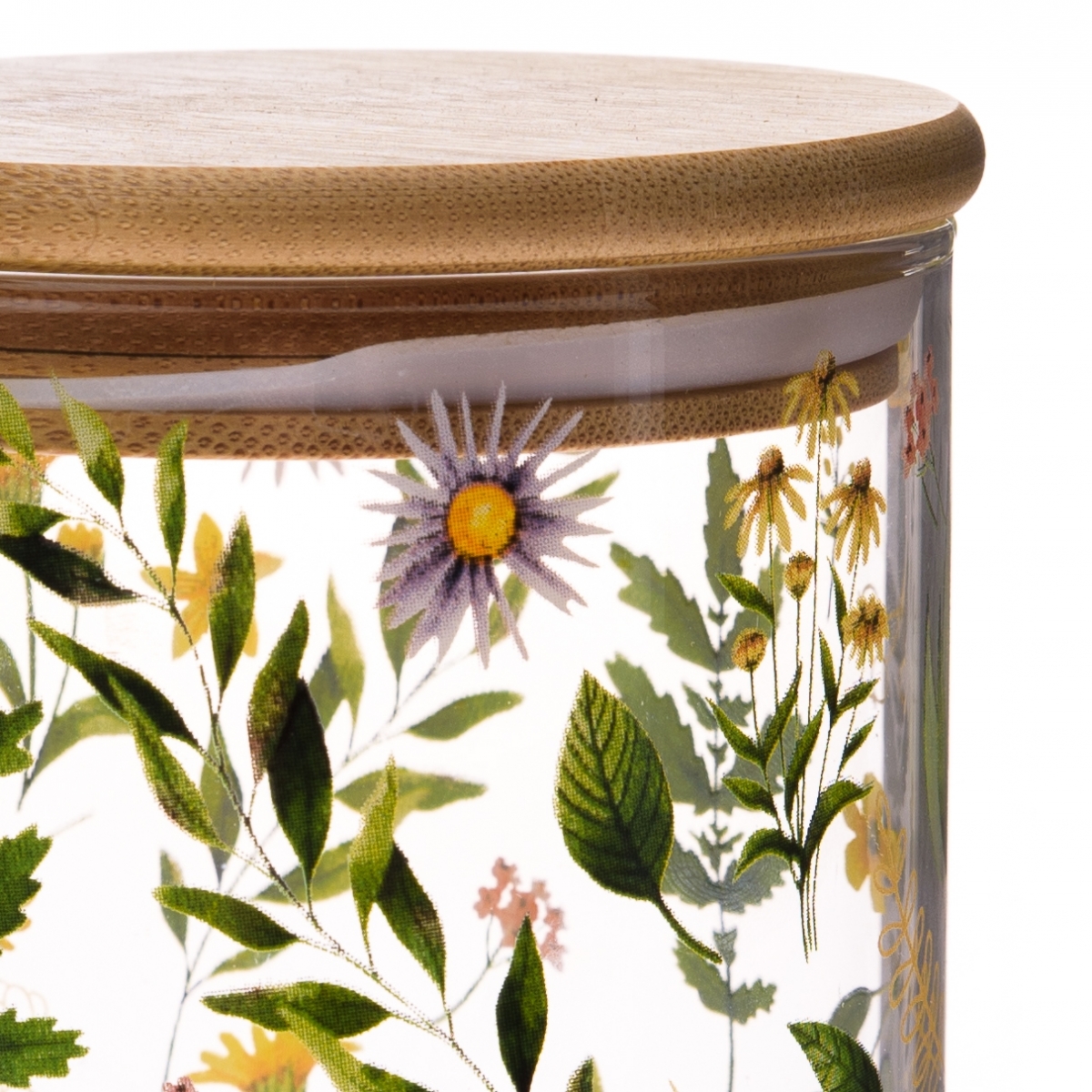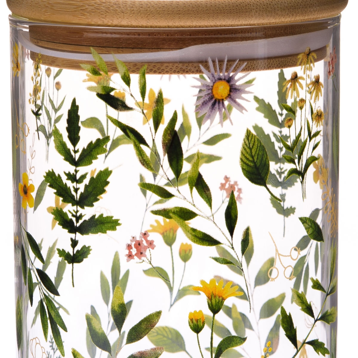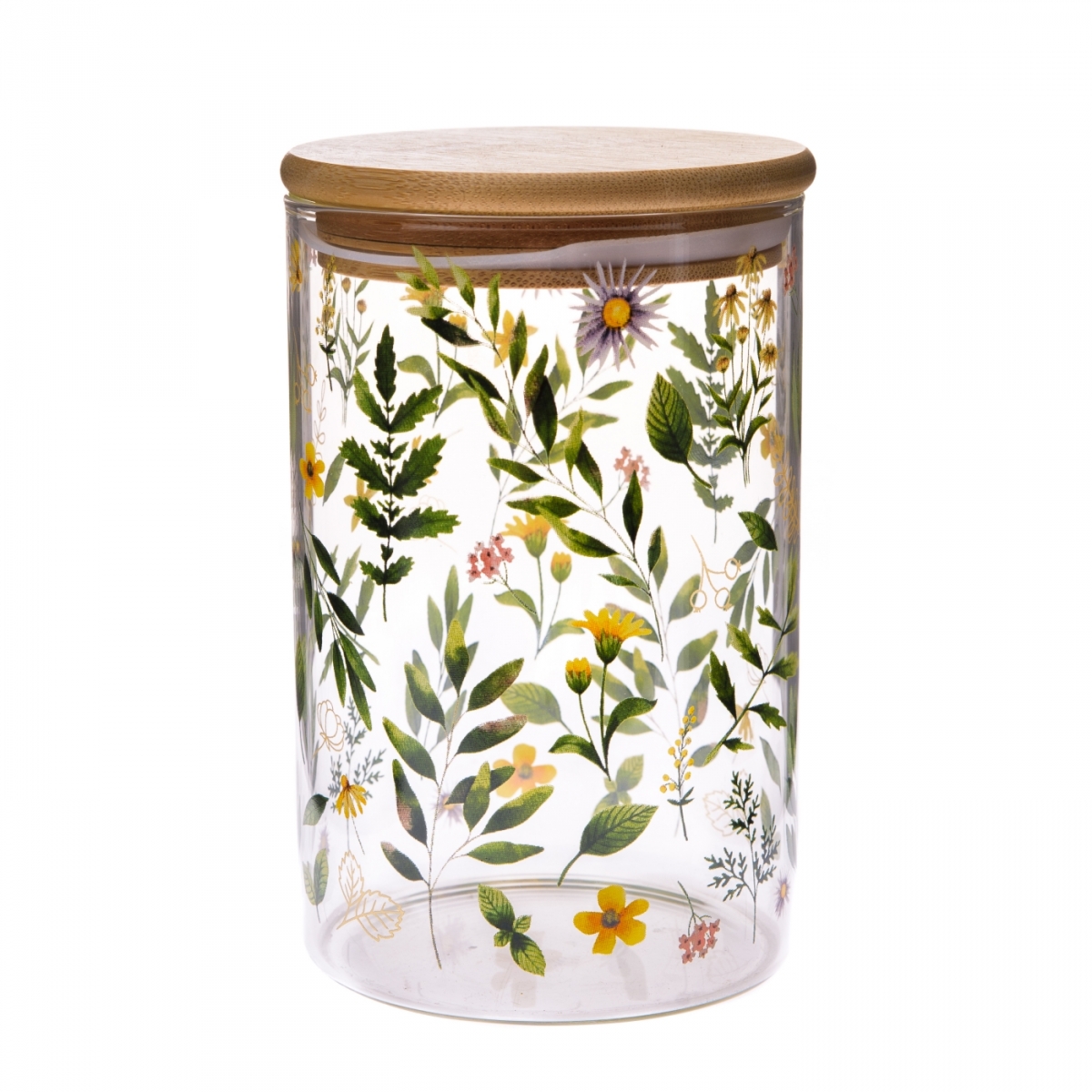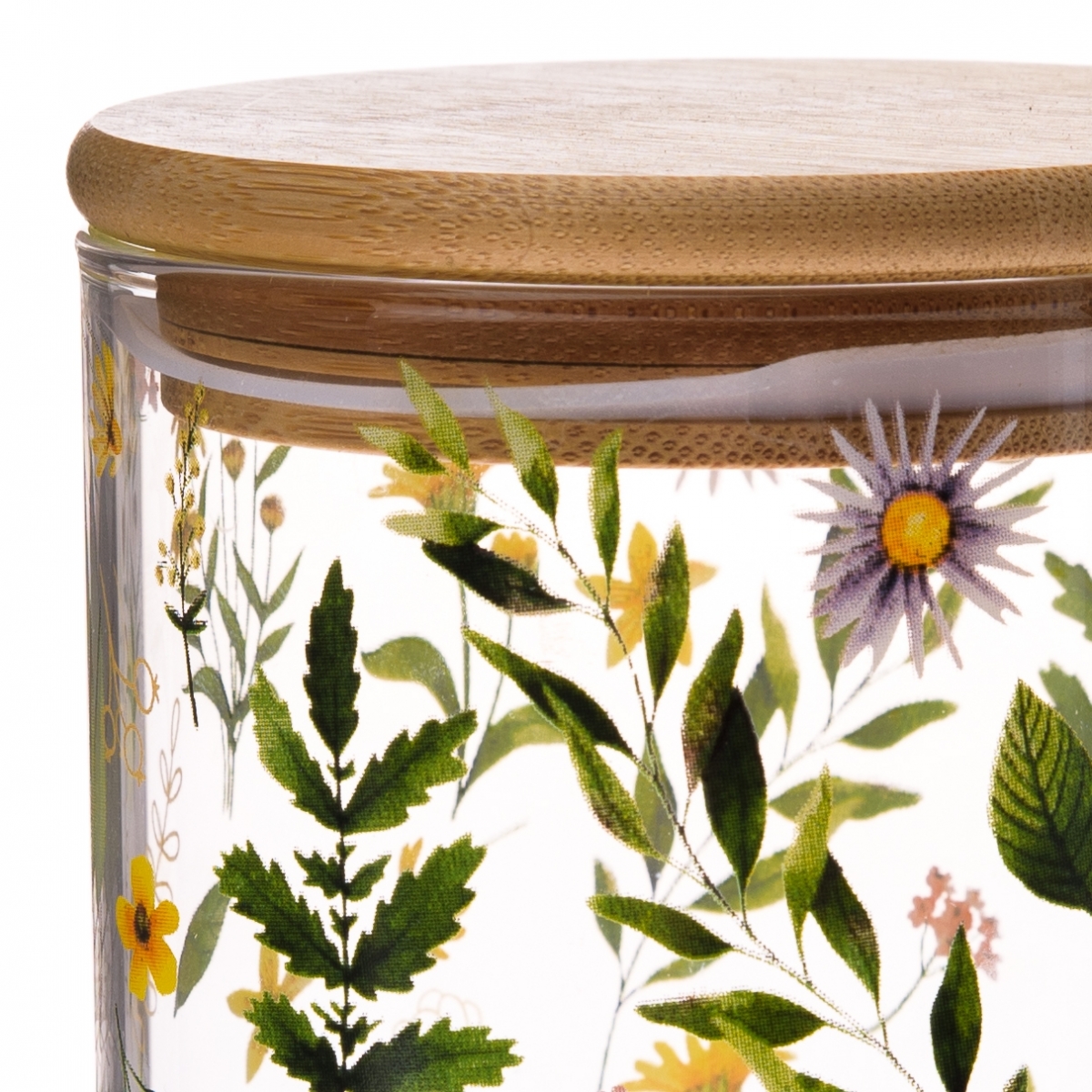 Dekorácia do kuchyne z kolekcie Lúčne kvety obsahuje veľké sklenené hrnčeky, maľované poháre, hrnčeky v tvare šálok na čaj, dózy s bambusovými viečkami rôznych objemov a maľovaný chalupársky džbán na vodu zo studne. Každý kúsok je ručne vyrobený pre najvyššiu kvalitu a autentickosť.