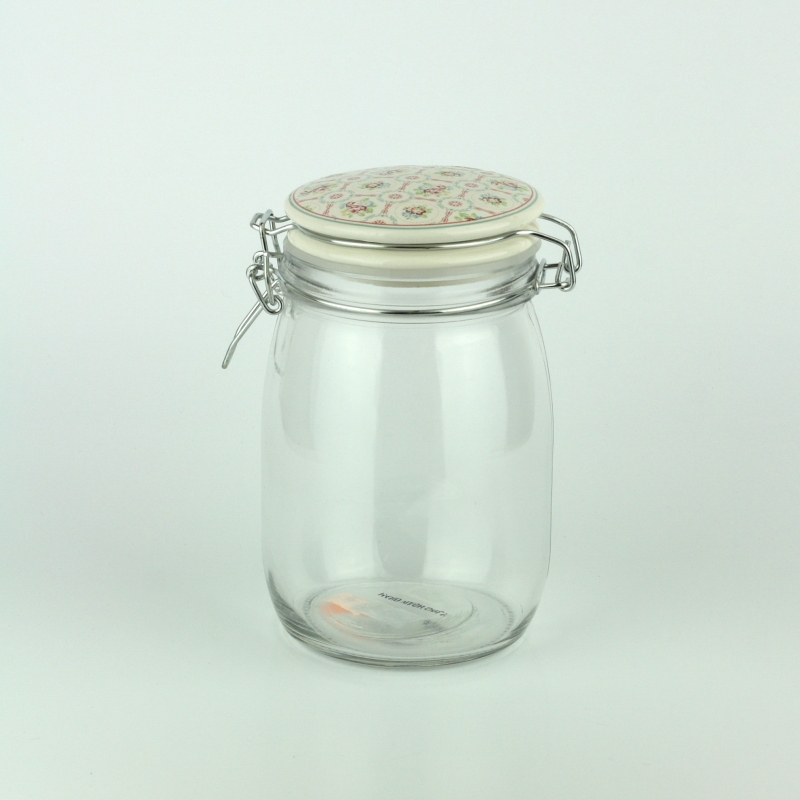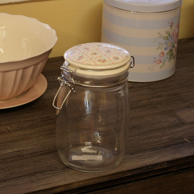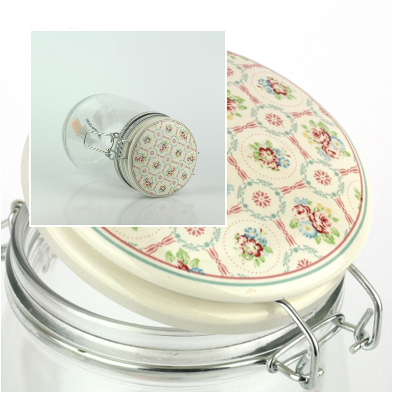 Sklenená dóza na potraviny Smilla white 1000ml s typickým kvetinovým motívom v pastelových farbách od Green Gate.
