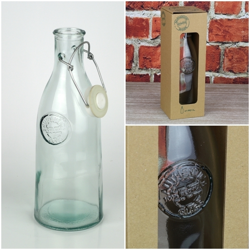 Fľaša je vyrobená zo 100% recyklovaného liateho skla v španielskej sklárni San Miguel. V rovnakom dizajne nájdete v ponuke veľa ďalších doplnkov do kuchyne. Môžete tak štýlovo vyriešiť ukladanie potravín a zároveň vyladiť kuchyňu k dokonalosti.