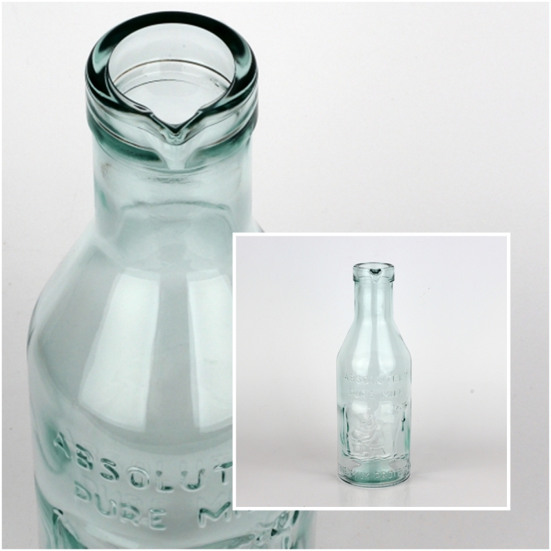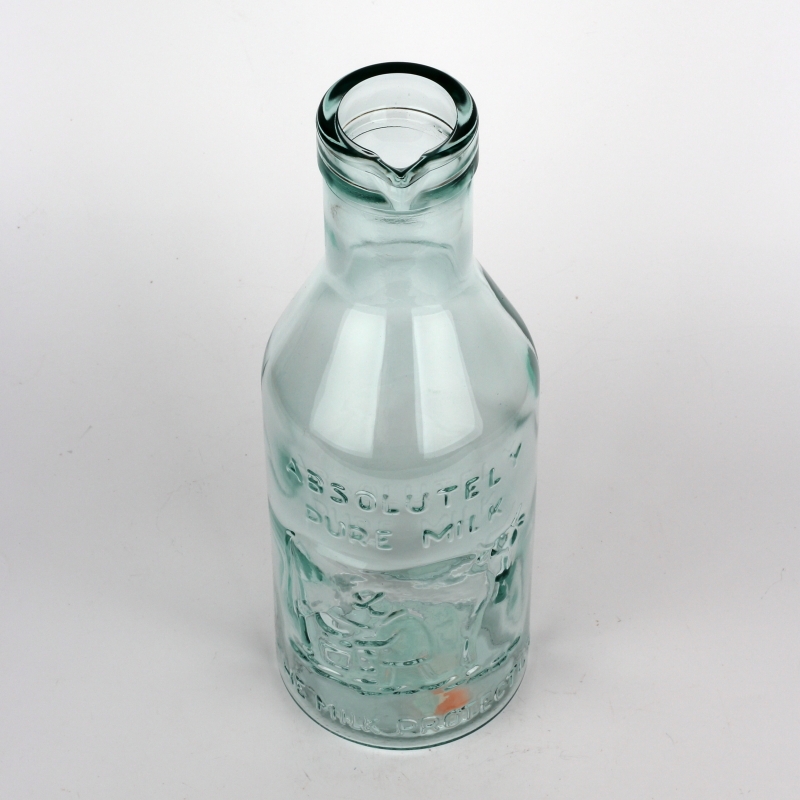 Sklenená fľaša na mlieko s výlevkou 1l na servírovanie mlieka. Miska cereálií s mliekom predsa patrí na každý prestretý stôl na raňajky.