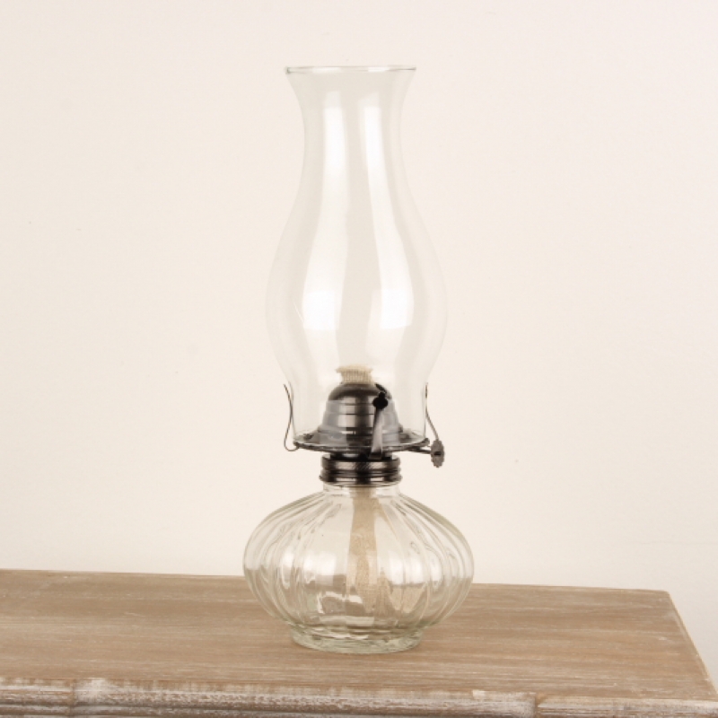 Sklenená petrolejová lampa s rebrovaním 32cm s výrazným rebrovaním skla na celej nádobke na petrolej.