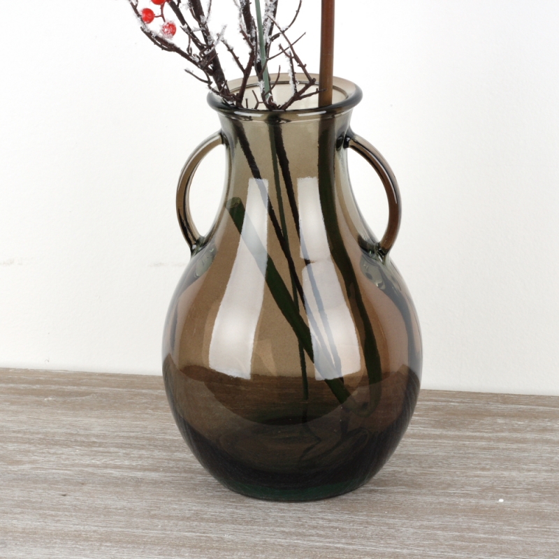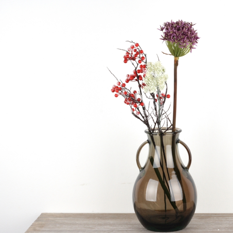 Sklenená váza hnedá 33cm si poradí o s veľkým Puget kvetín, alebo do nej môžete umiestniť celoročné dekoráciu vo forme umelých rastlín.