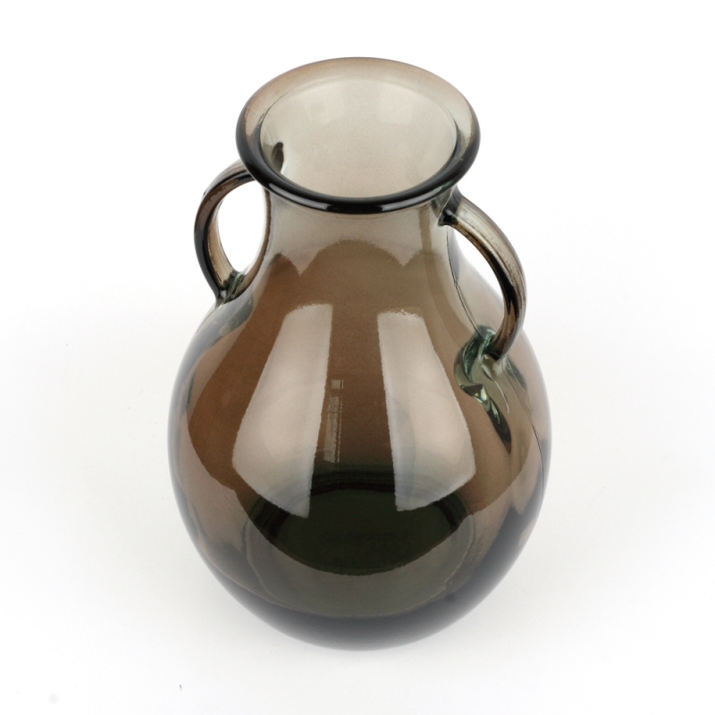 Tvar vázy pripomína džbánik s ušami.