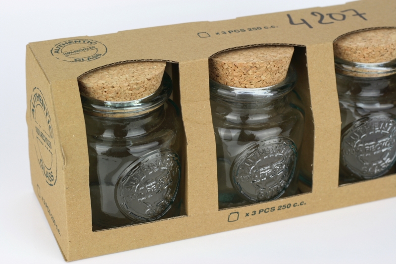 Koreničky sú vyrobené zo 100% recyklovaného liateho skla v španielskej sklárni San Miguel. V rovnakom dizajne nájdete v ponuke veľa ďalších doplnkov do kuchyne.