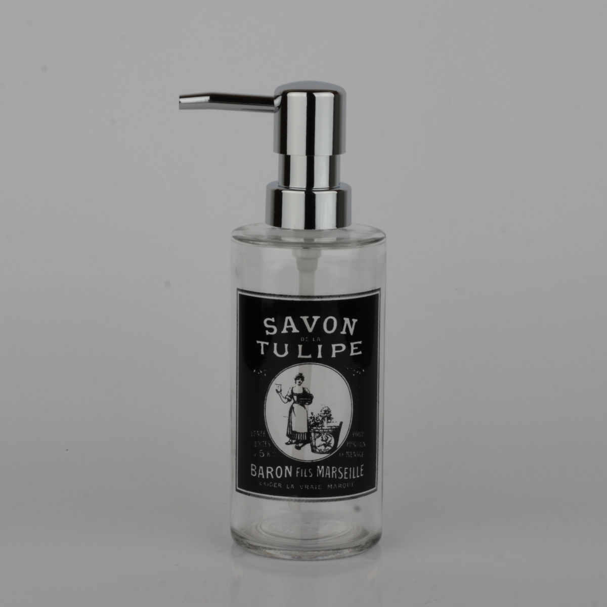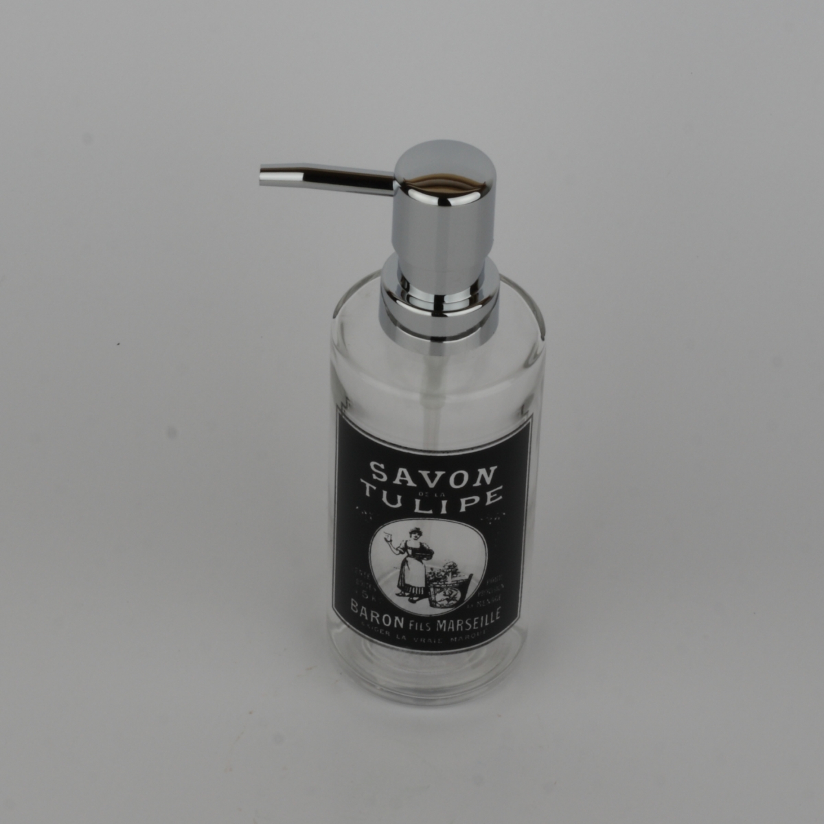 Sklenený dávkovač na tekuté mydlo SAVON TULIPE 18,5cm pre bezchybný vzhľad Vašej vidiecky ladené kúpeľne.