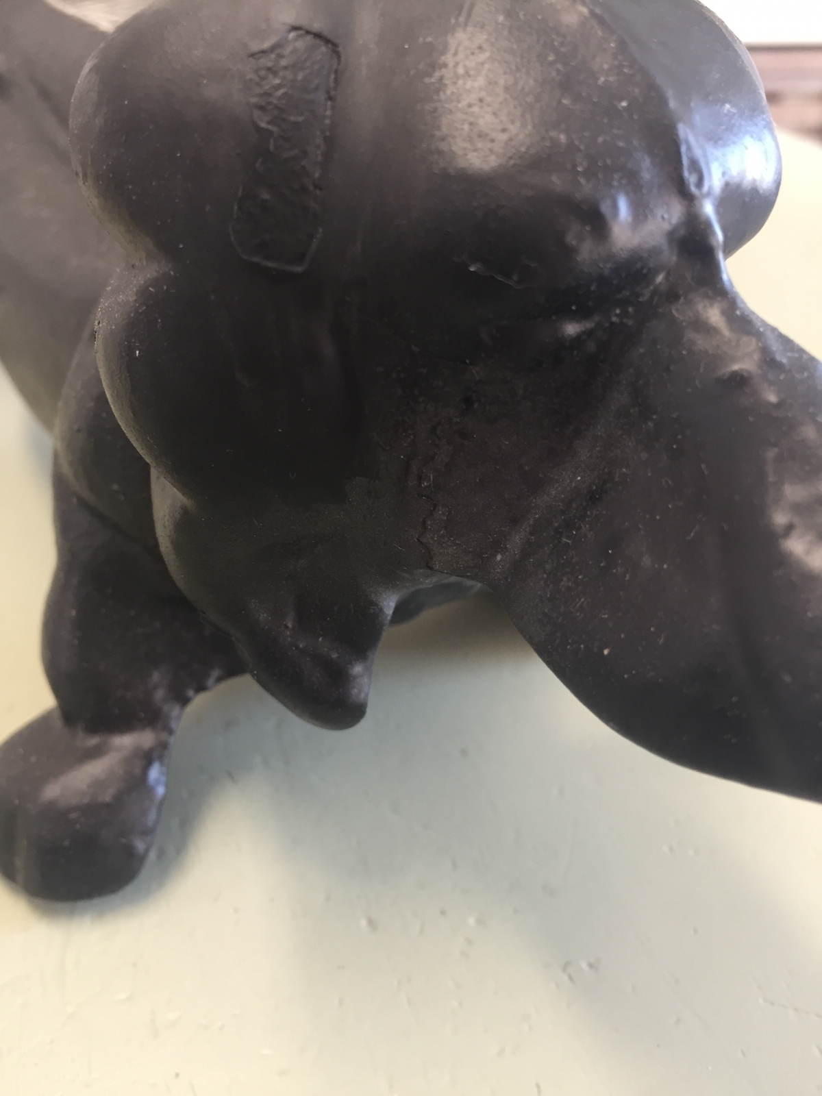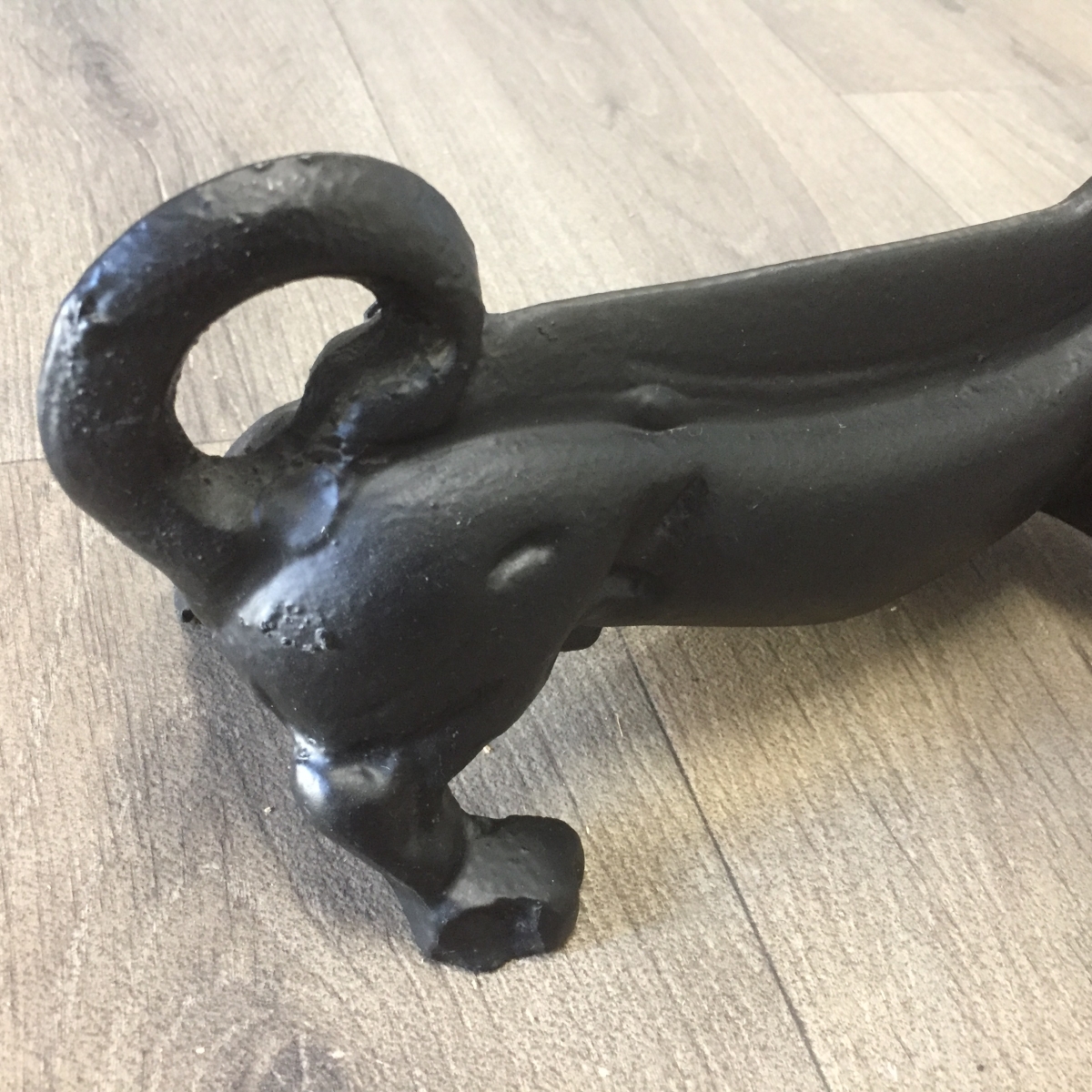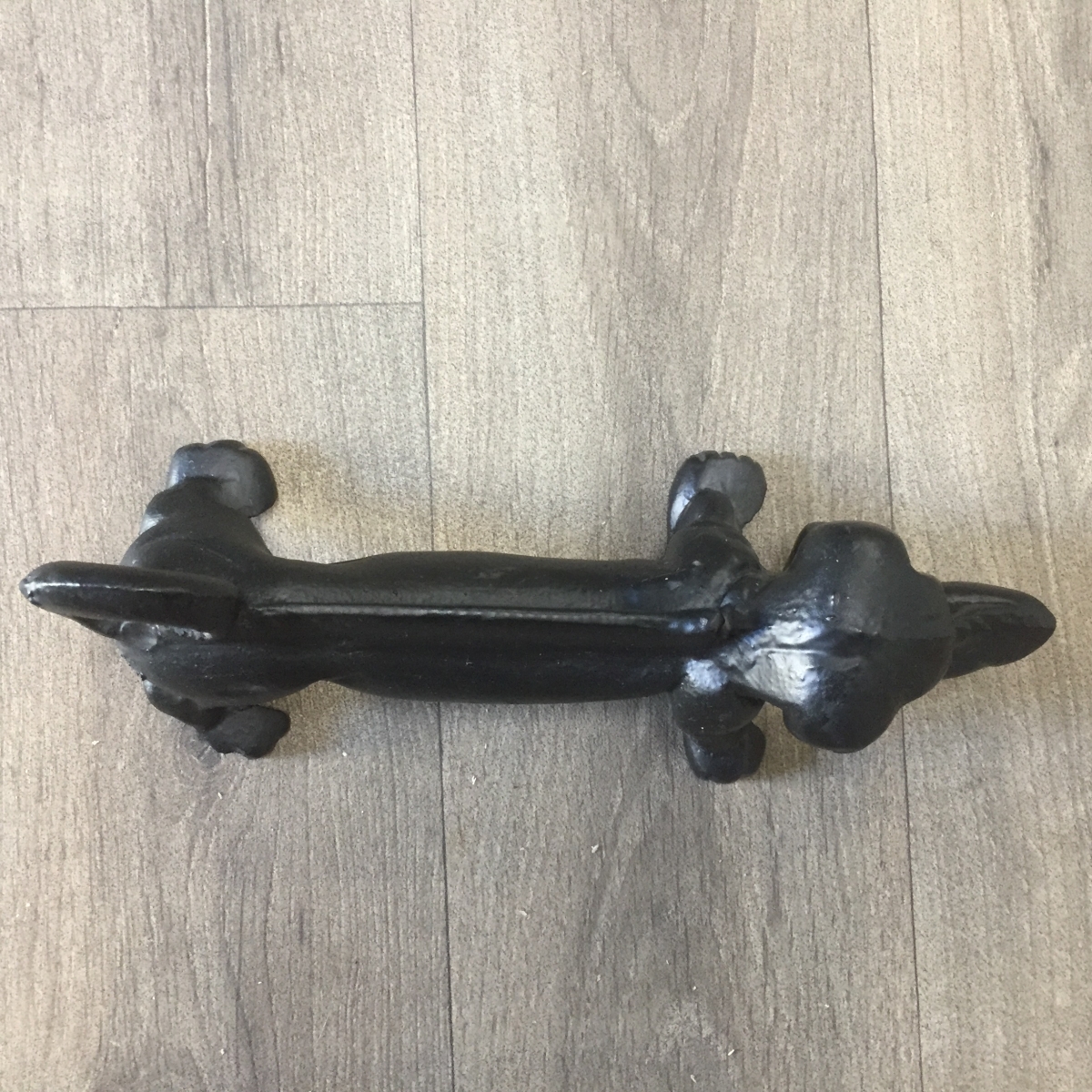 Litinová škrabák na boty Litinový škrabák na boty pes 32x12x10cm byl vyřazen z důvodu nedokonalosti zadní tlapky a poškození nátěru na hlavě psa.