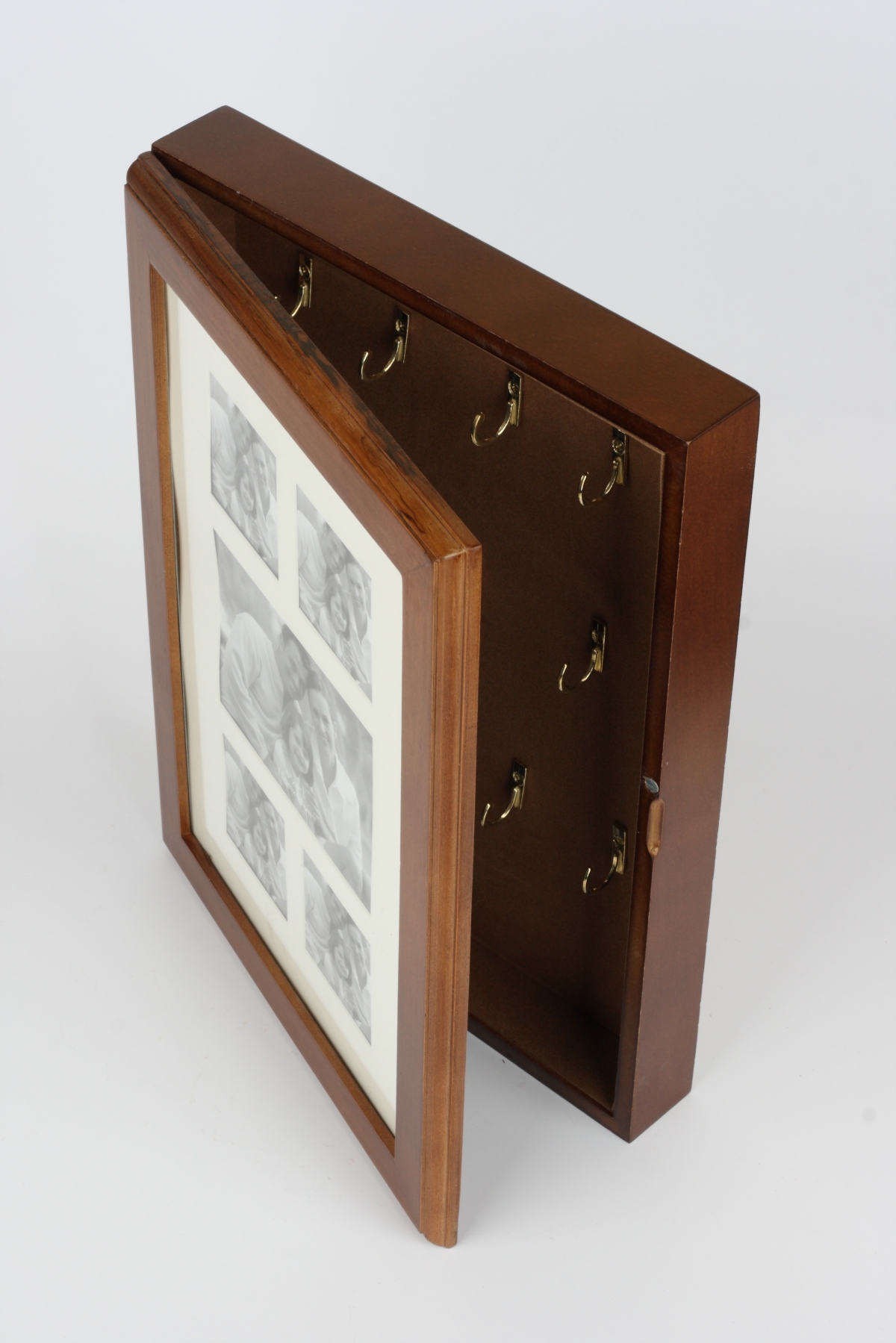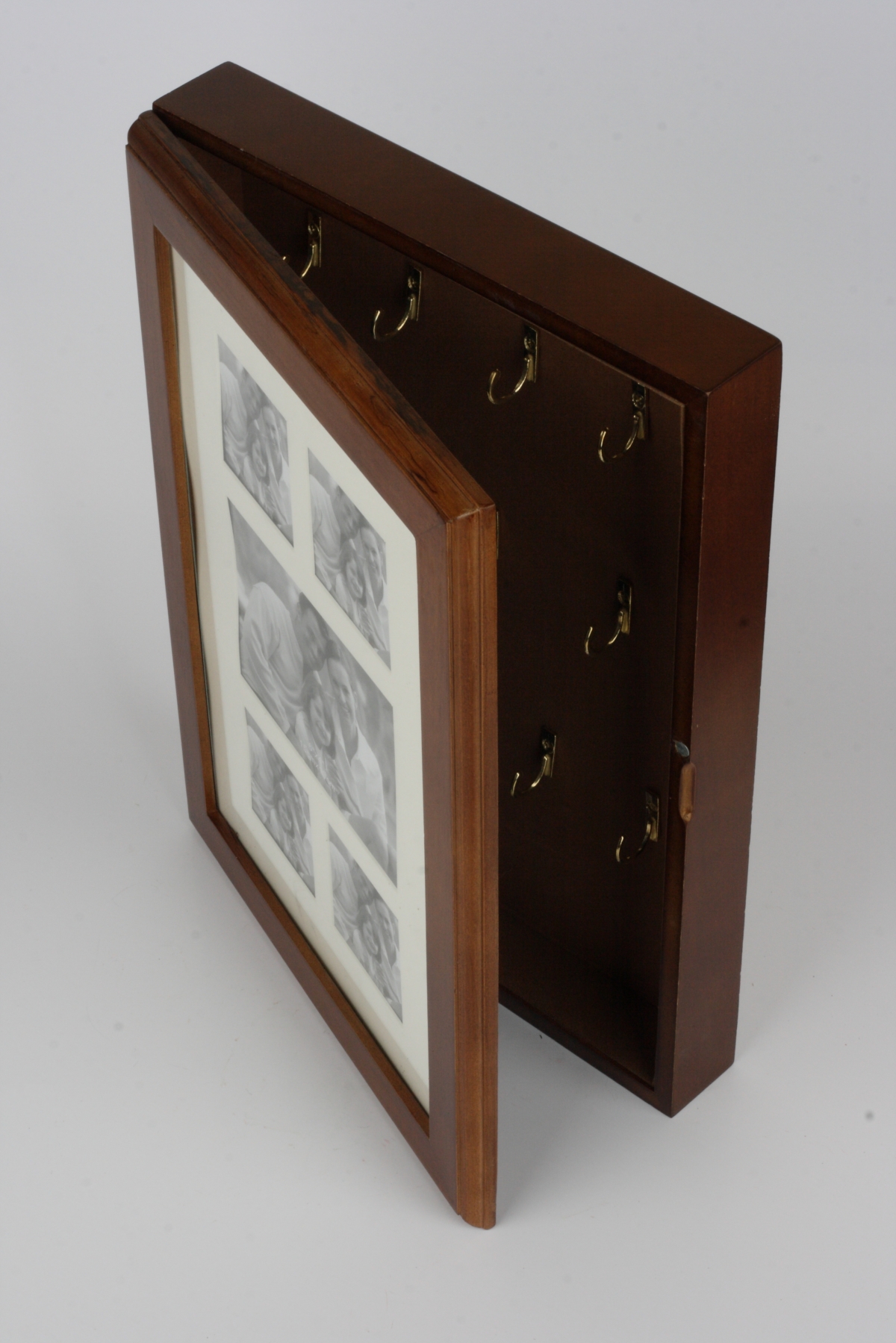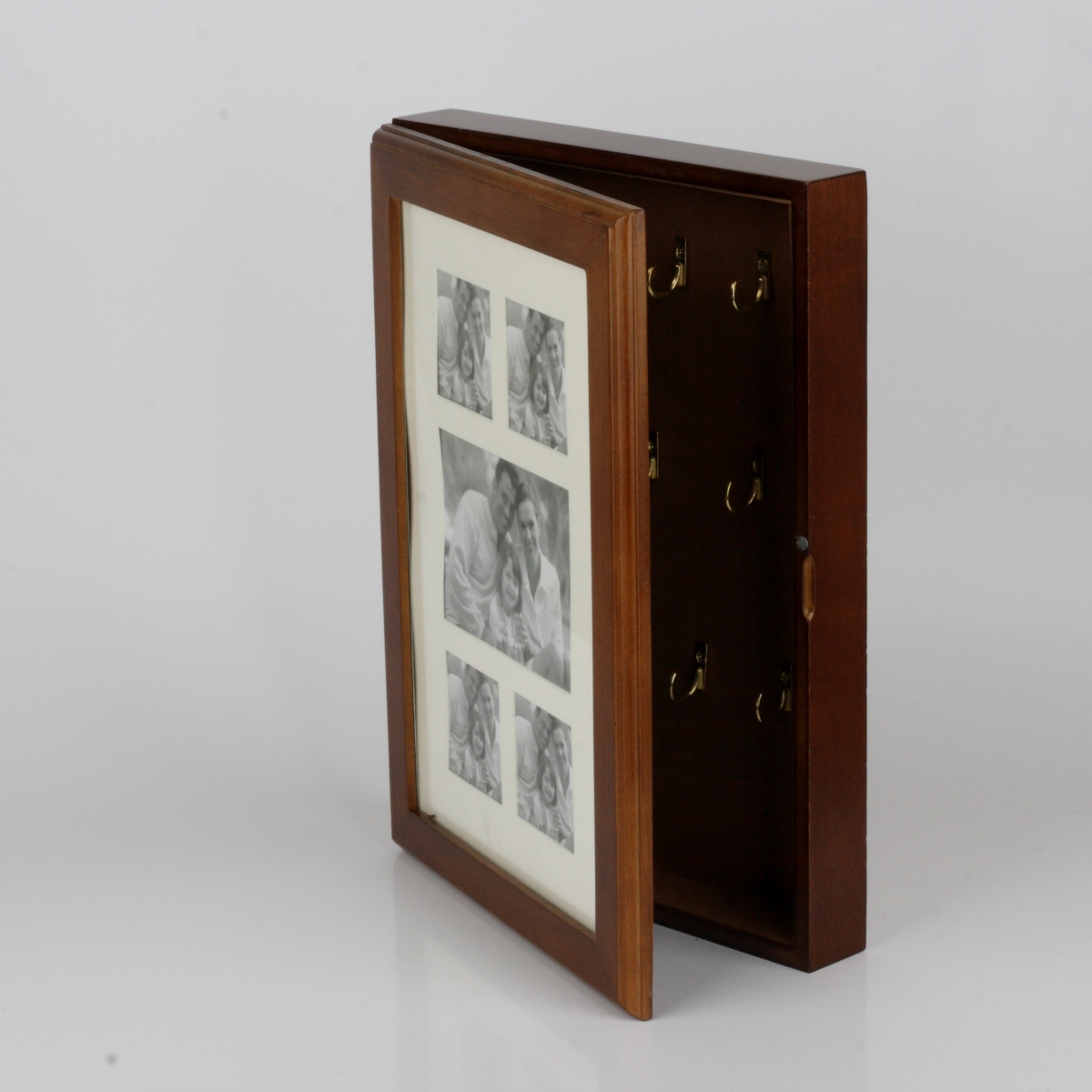 Skříňka na klíče s fotorámečkem 36x25cm se spoustou háčků na klíče všech členů rodiny. Přední strana skříňky navíc slouží jako krásný rámeček na fotografie. Můžete si tak každý den připomínat příjemně strávené společné chvíle pohody.