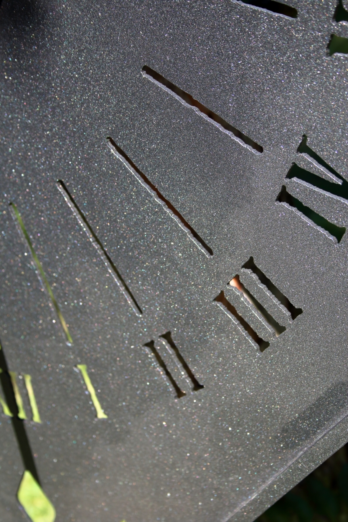Tieto slnečné hodiny na stenu sú veľmi kvalitným a precízne vyrobeným kúskom - zo silného železného plechu a podkúvanie hranolom 10 x 10 mm. Úprava povrchu hodín spočíva v elektrostatickom nanesení čiernej práškovej štrukturálne farby, vypaľované pri 200 stupňoch Celzia.