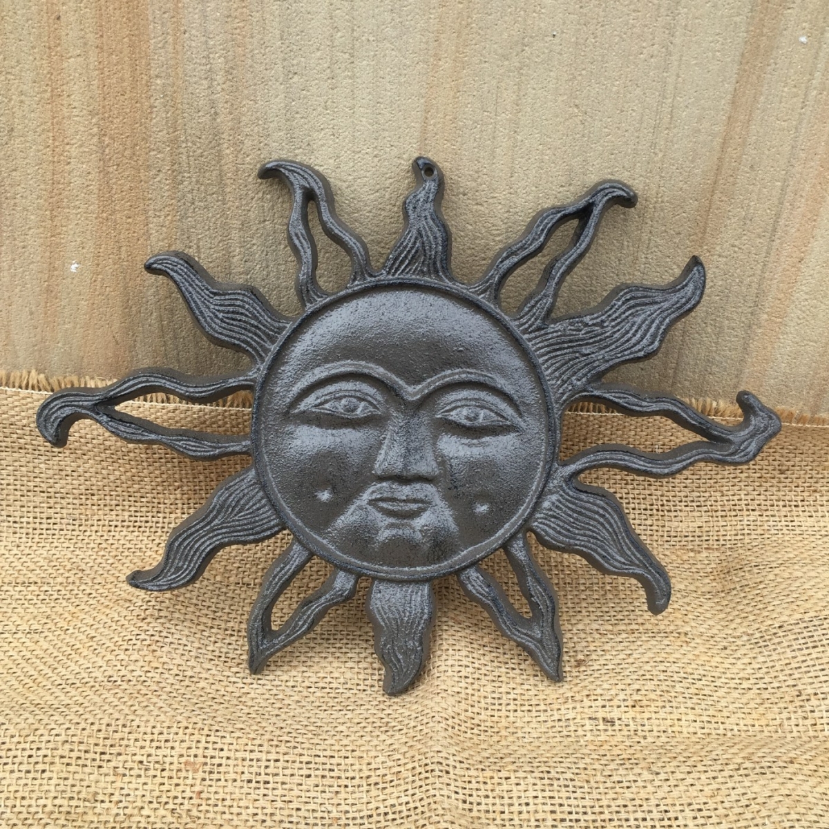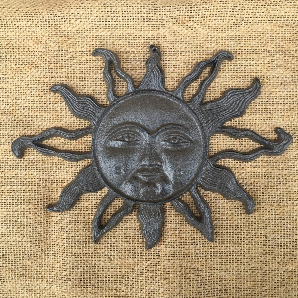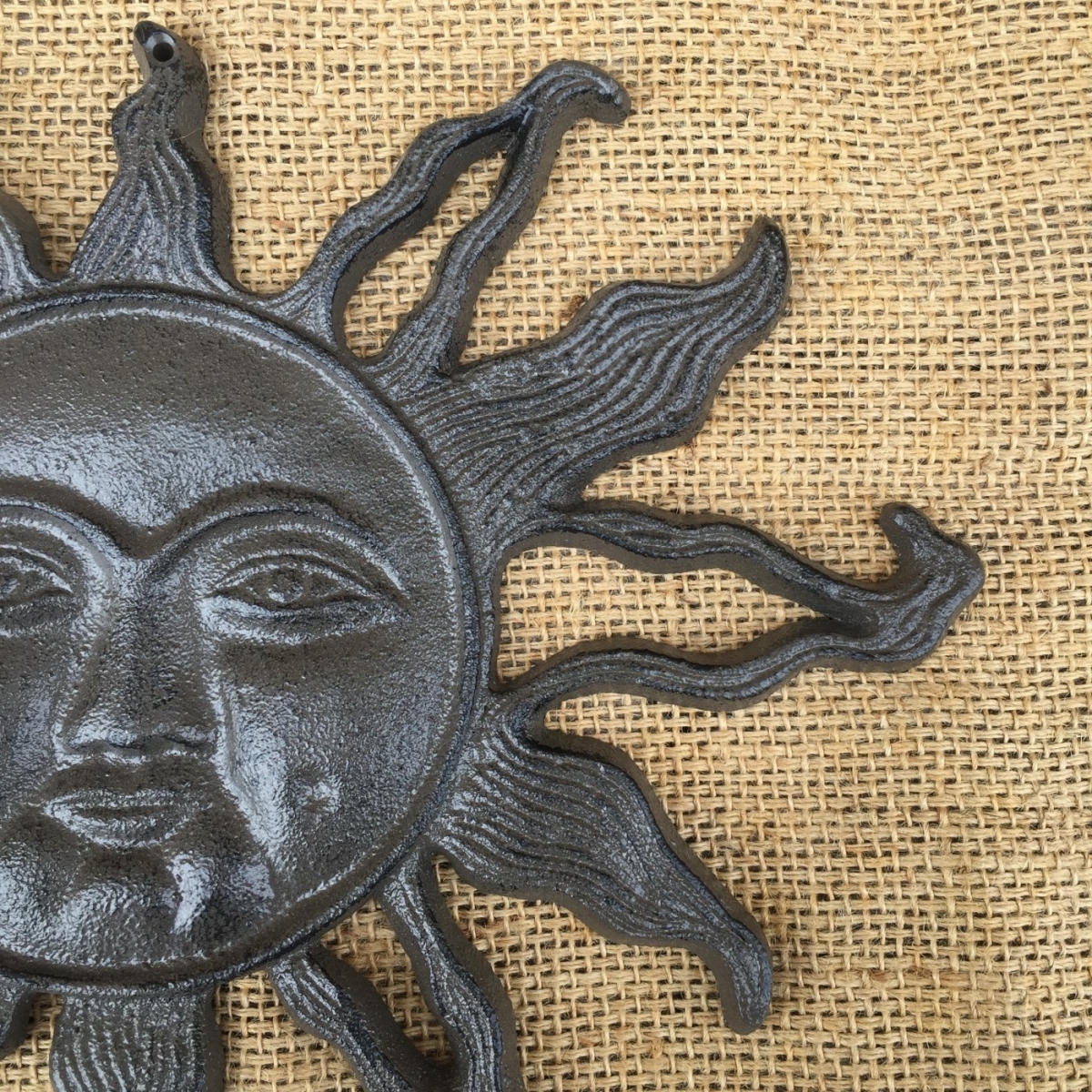 Slnko na stenu je liatinová dekorácia, ktorá vďaka svojmu rustikálnemu prevedeniu najlepšie vynikne zavesená na kamennom múriku, starých drevených vrátach alebo pri vonkajšom posedení. Môžete ju tiež začleniť do aranžmánu ku vchodovým dverám alebo na terasu.