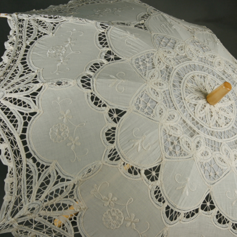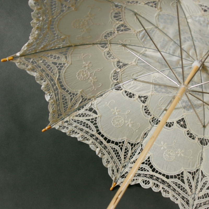 Slnečník má dĺžku 66 cm , jeho priemer je 80 cm . Jedná sa o nádhernú retrodekoraci , ktorej zamatovo krémová čipka nadchne svojou krásou naozaj každého .