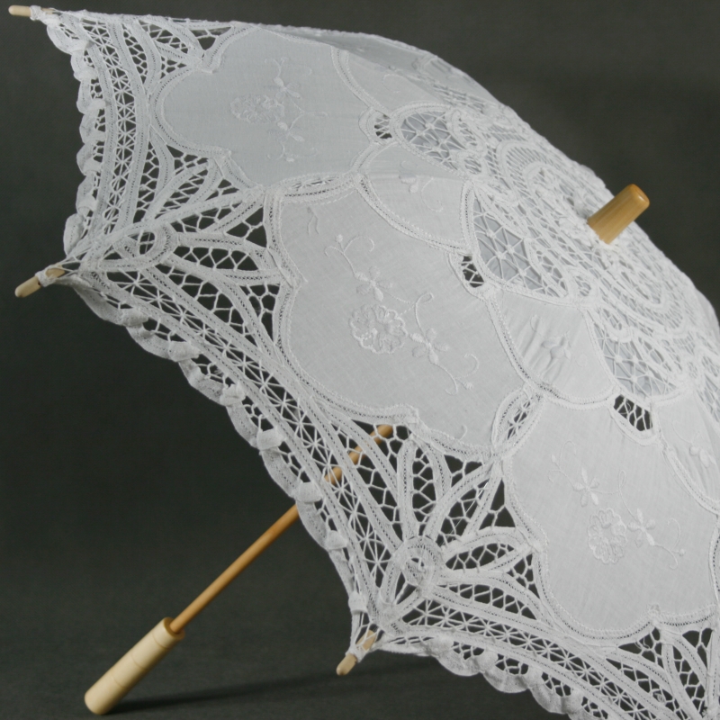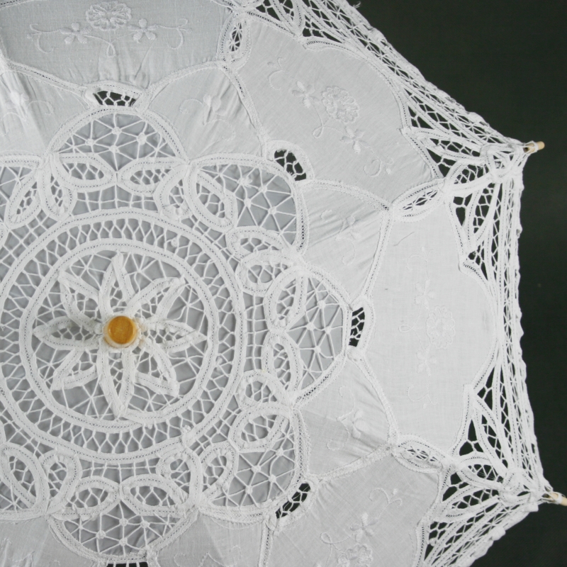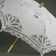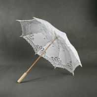 Slnečník je dlhý 52 cm a má priemer 67 cm . Jeho rukoväť je drevená . Najkrajšie na tomto slunečníčku je biela veľmi vkusne zdobená čipka .