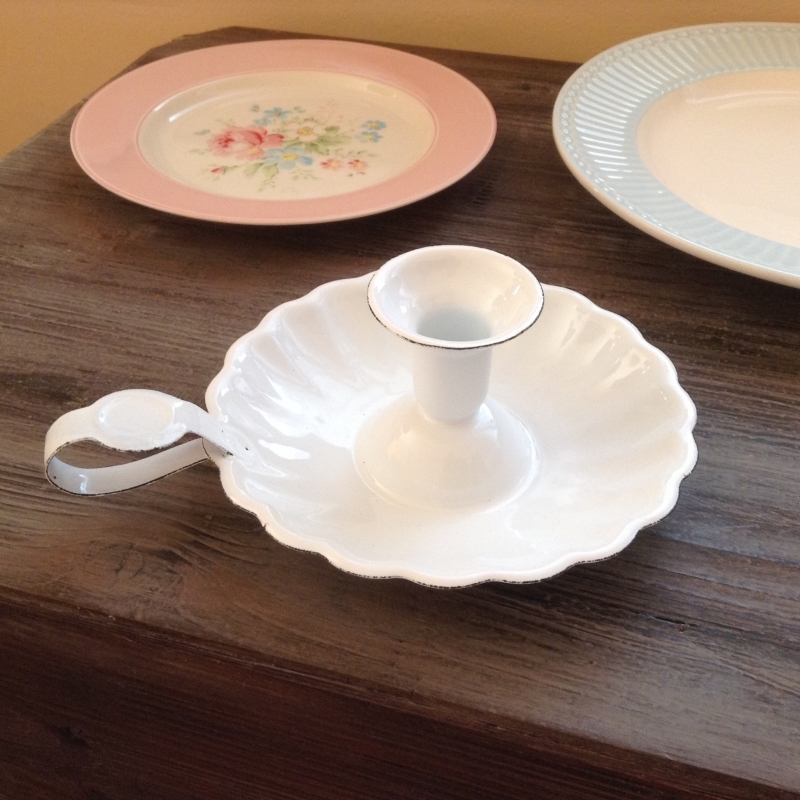Smaltované doplnky dokonale zapadajú do vidieckeho štýlu bývania. Svietnik navyše vykúzli romantickú atmosféru.