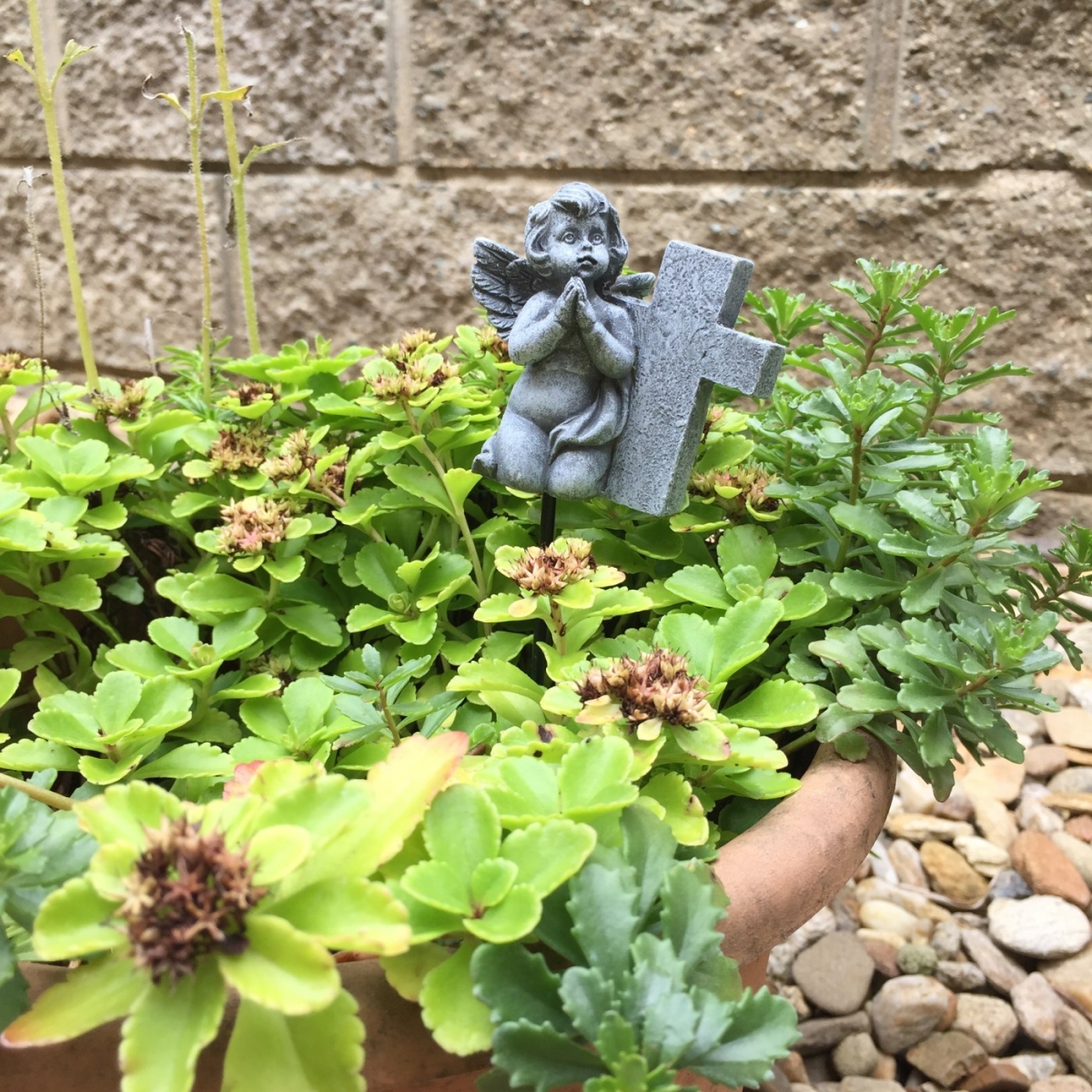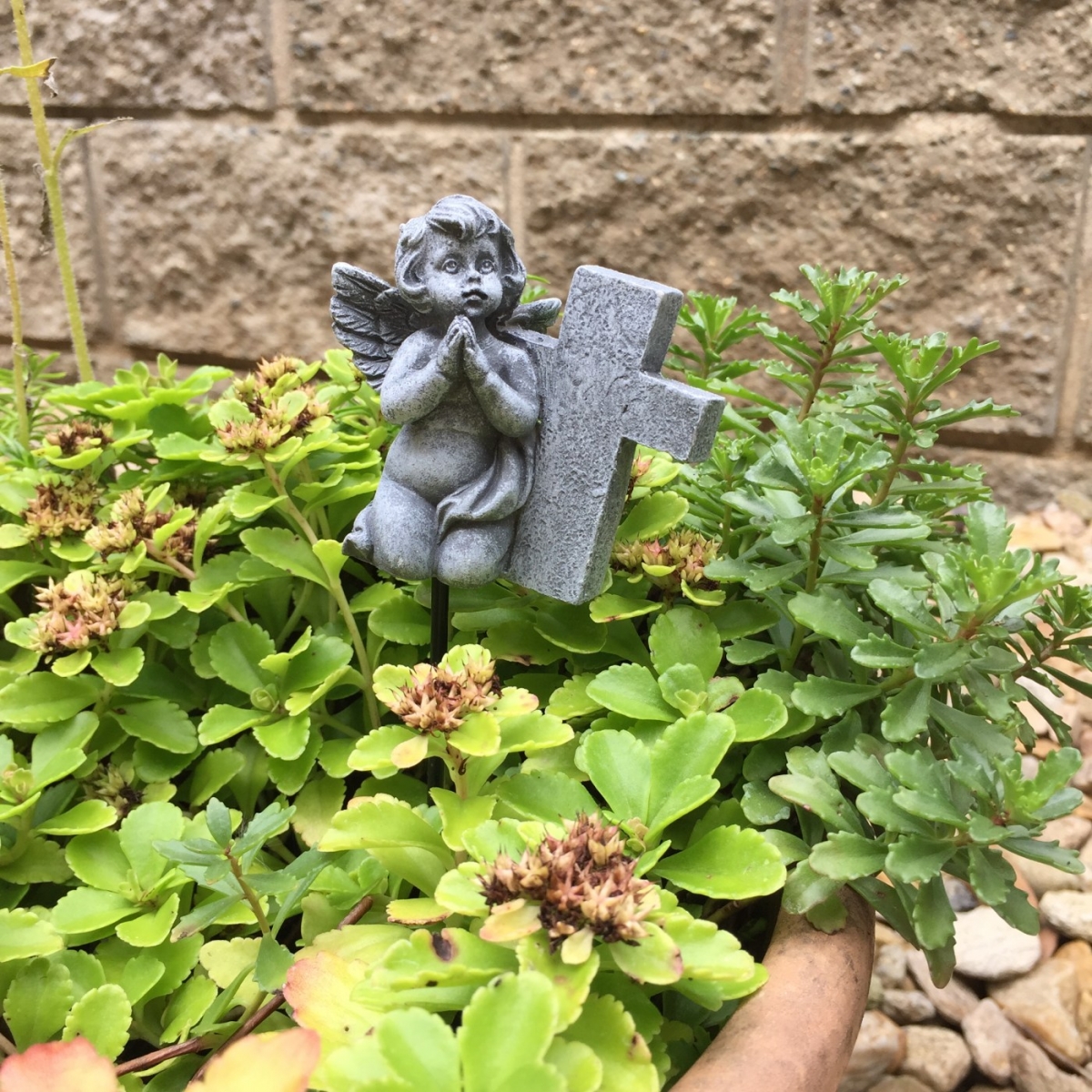Rozmery: výška zápichu 17cm, anjel s krížikom š7 x v6,5 cm