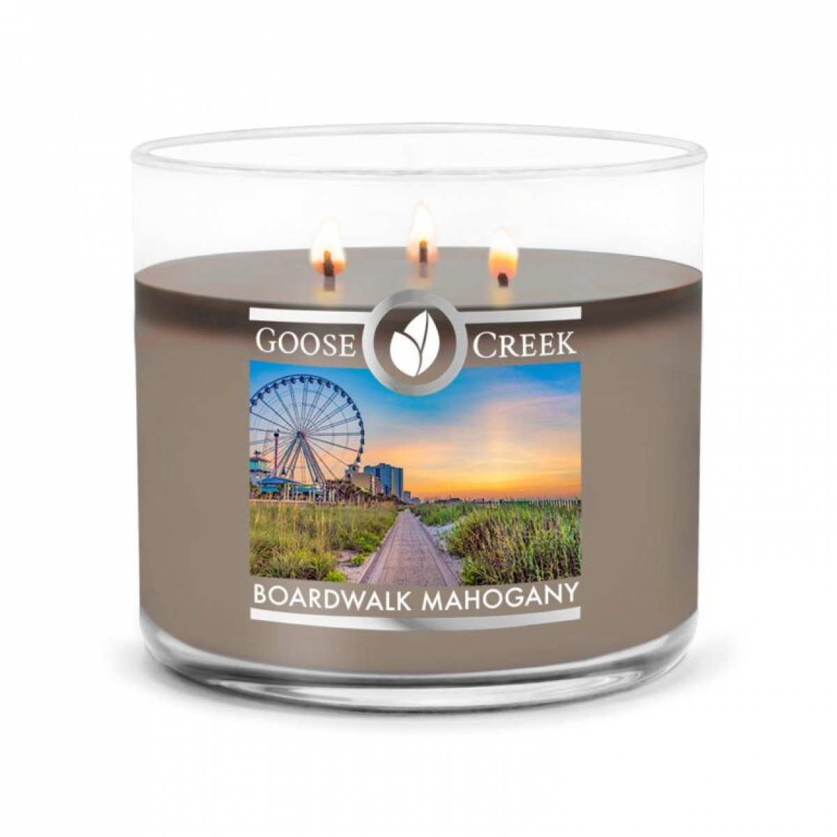 Sójová sviečka 410g BOARDWALK MAHOGANY s tromi knôtmi, prevonia Váš domov dokonalou vôňou. Vďaka jej intenzite a dĺžke horenia si ju budete užívať dlhé týždne.