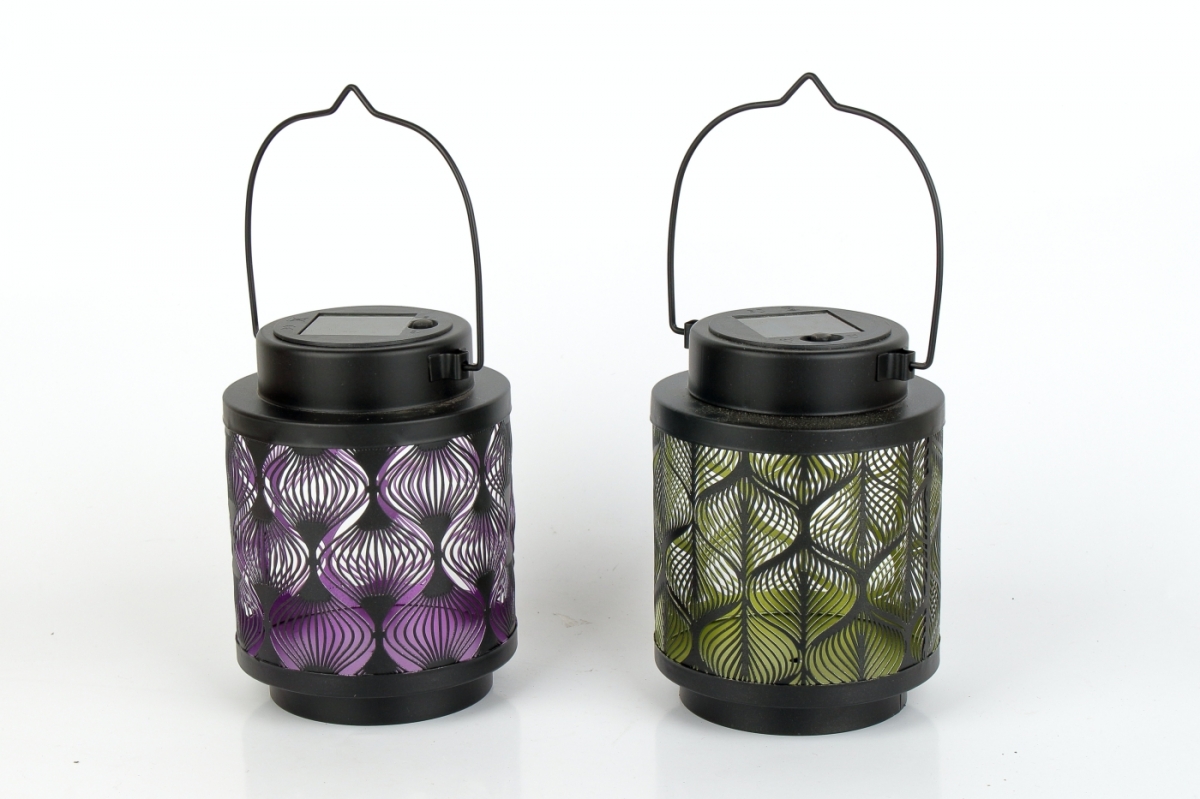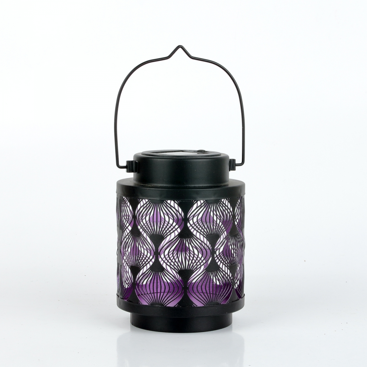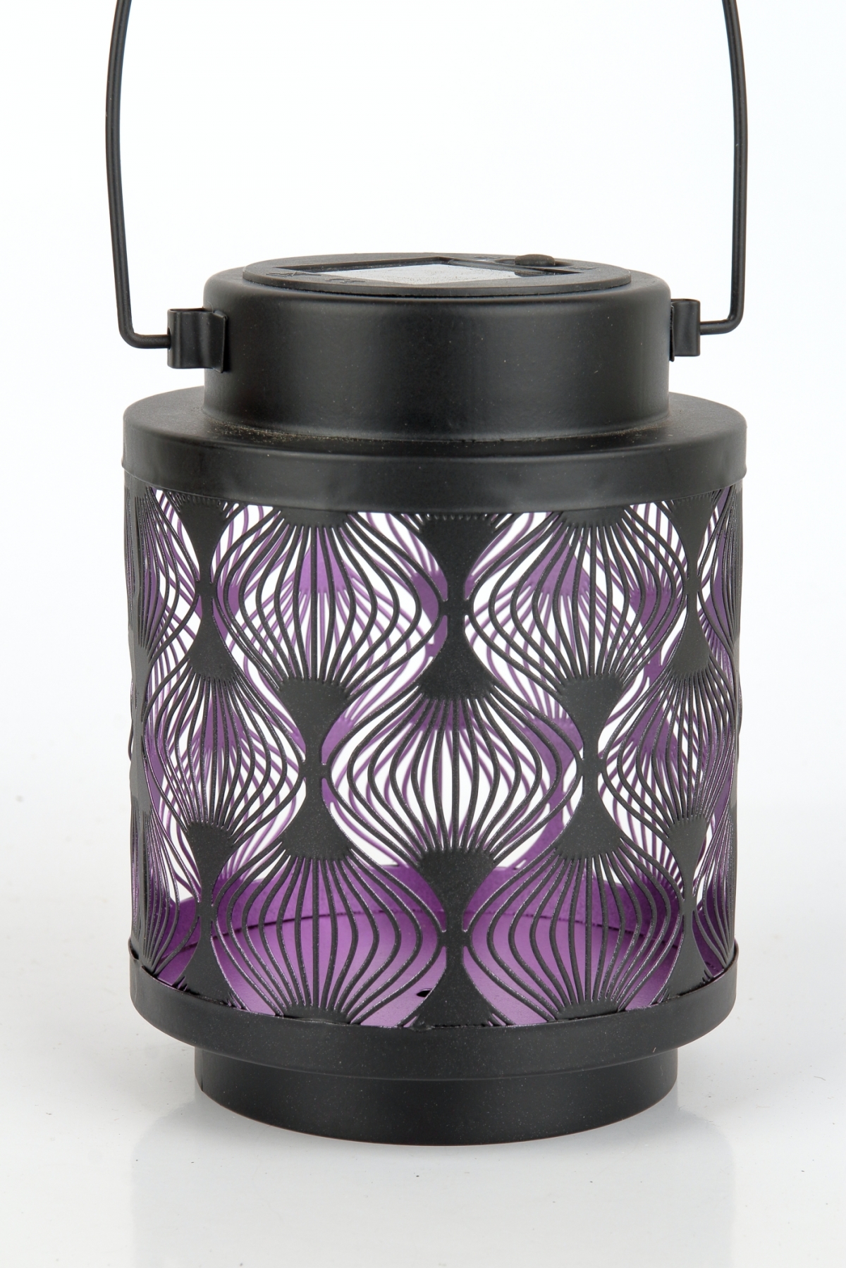 Solárna lampáš má vnútorné steny zafarbené do odtieňa ružovo-fialová a preto svetlo z lucerny vytvára práve tento odtieň.