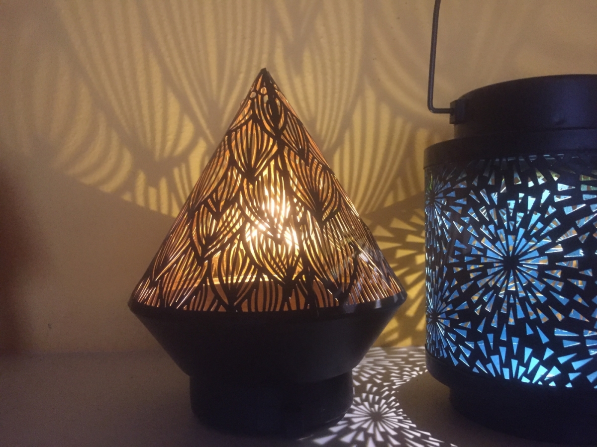 Lampáš má vnútorné steny sfarbené do odtieňa oranžové a preto svetlo z lucerny prechádzajúce cez ornamenty, vytvára práve tento odtieň.
