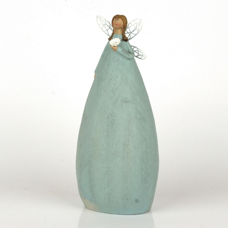 Soška andělka v modrých šatách Ruka na srdci 27cm