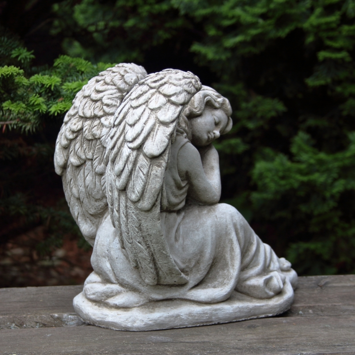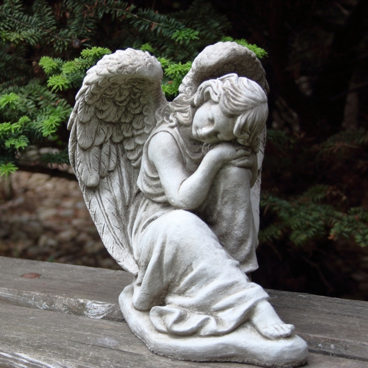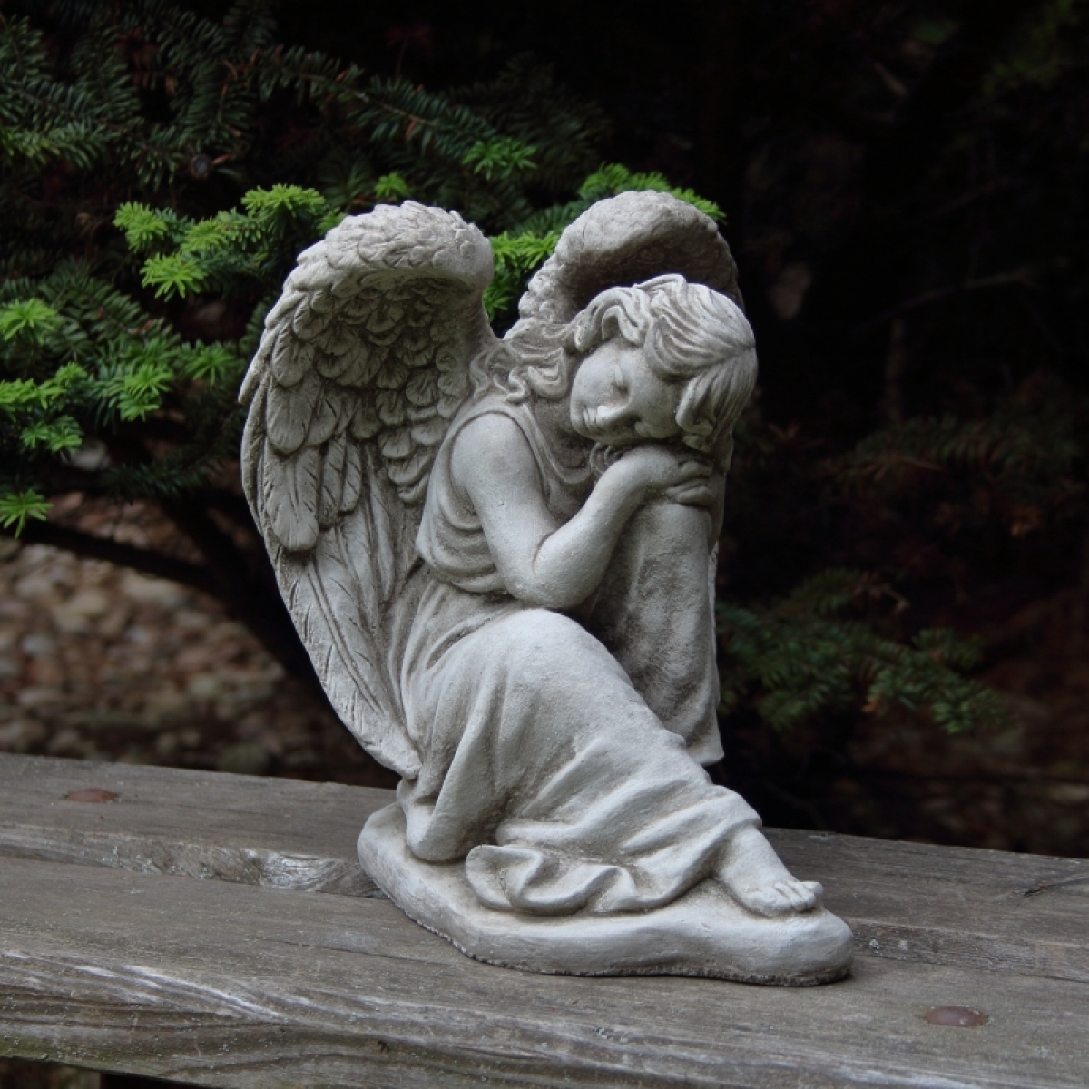 Soška anjela sa bude vynímať v skalke či u záhradného posedenia.