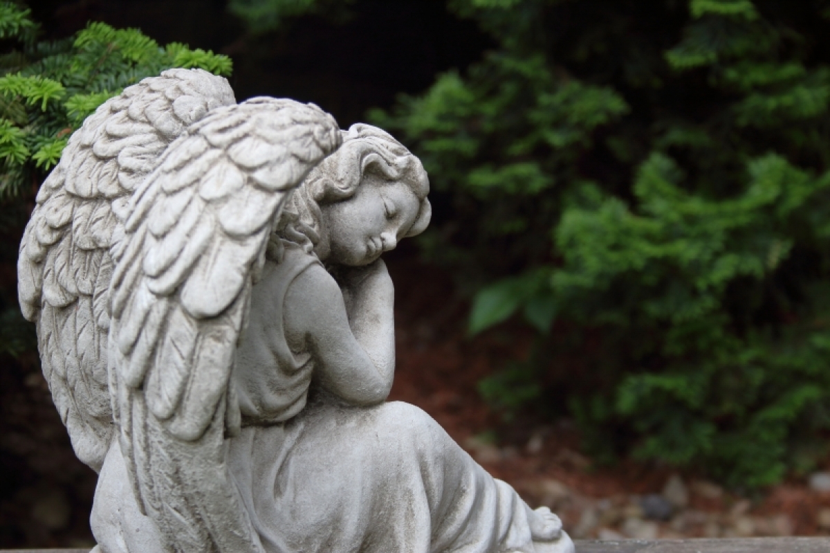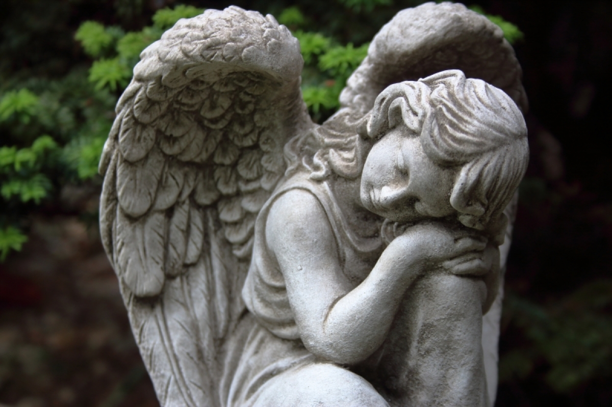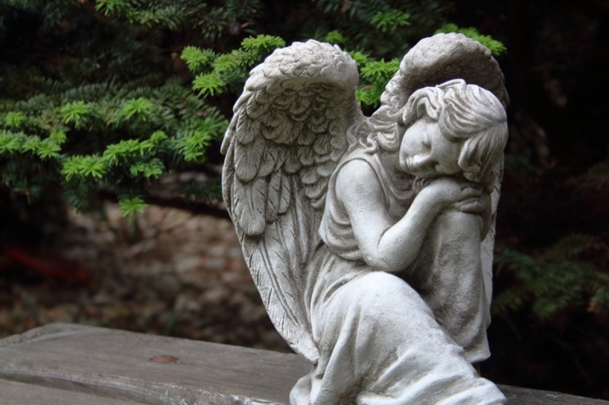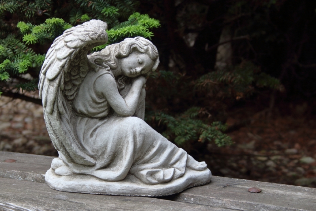Soška anjela sa bude vynímať v skalke či u záhradného posedenia.
