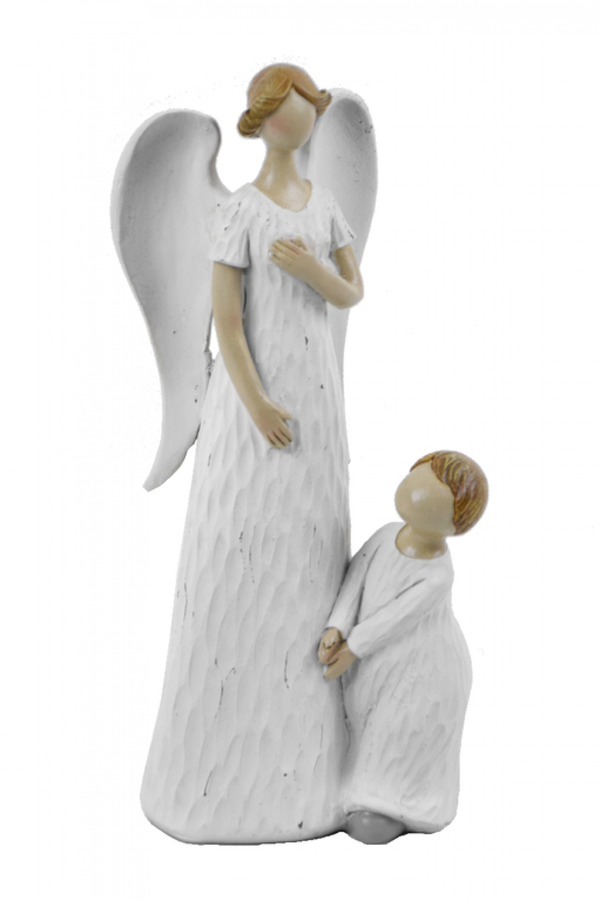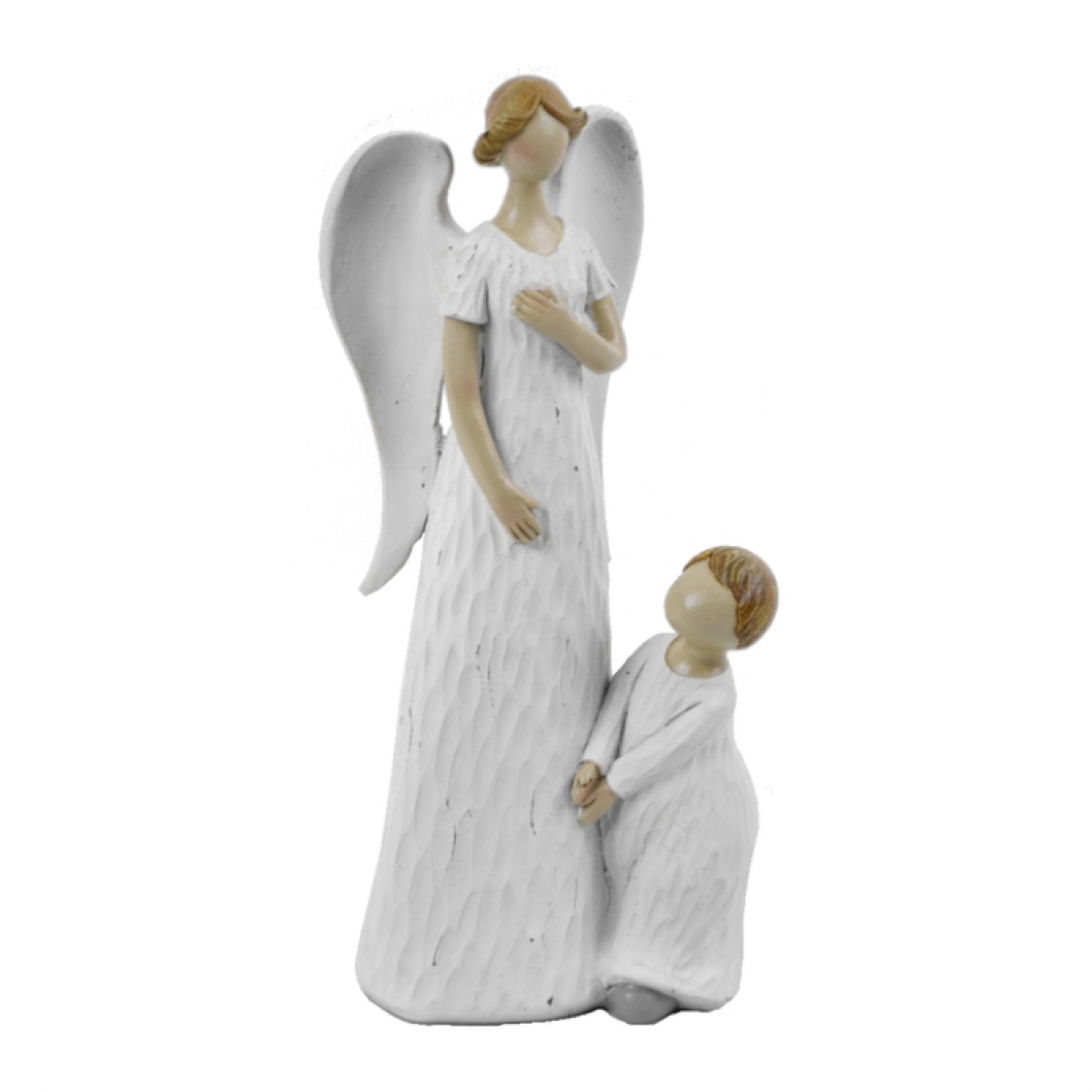 Soška anjel matka a dieťa biela Láska ako symbol pevného spojenia medzi matkou a jej dieťaťom. Jednoducho láska na celý život.