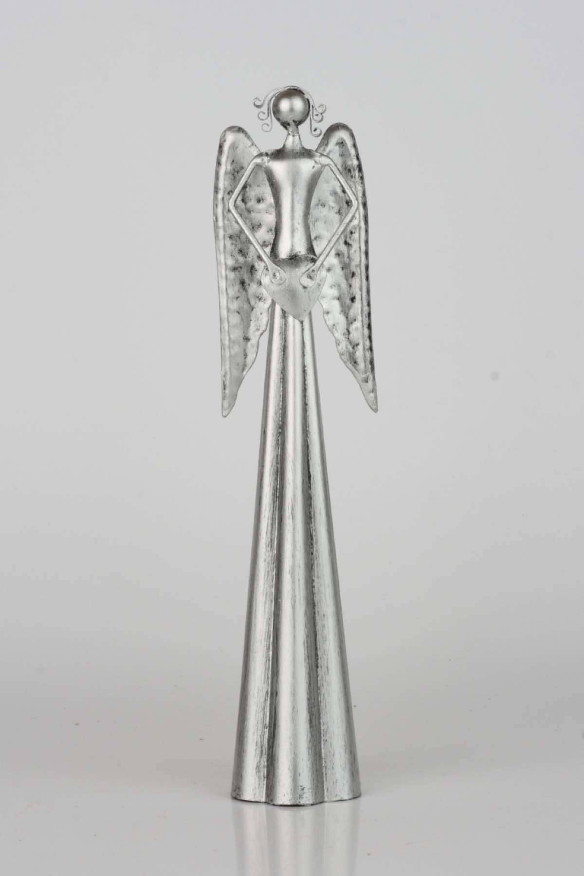 Soška anjel plechový strieborný 25,5cm