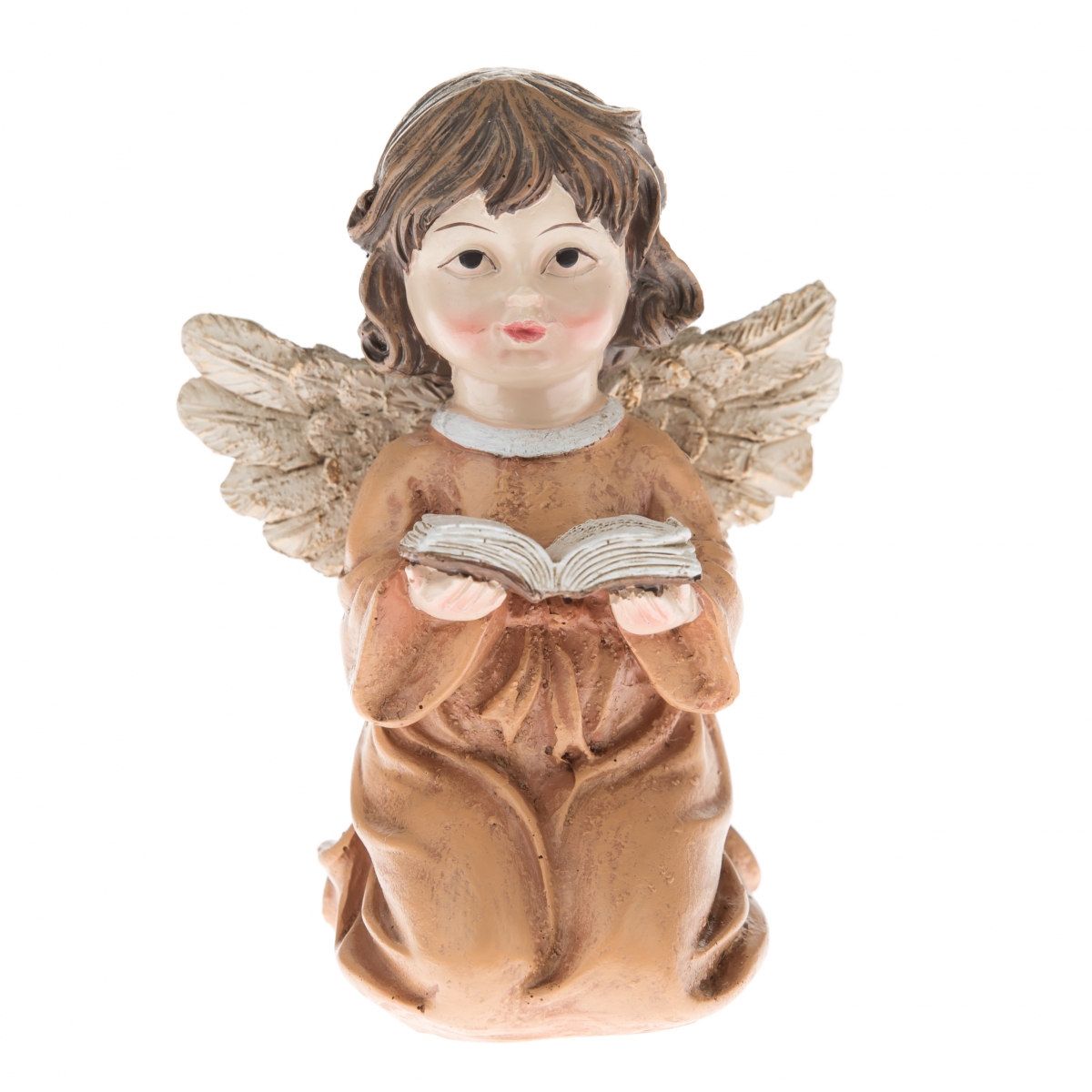 Soška anjela predstavuje kľačiace dievčatko v jantárových šatách s pozlátenými krídlami. Anjelik sa bude skvele vynímať na poličke, parapete alebo v knižnici medzi knižkami.