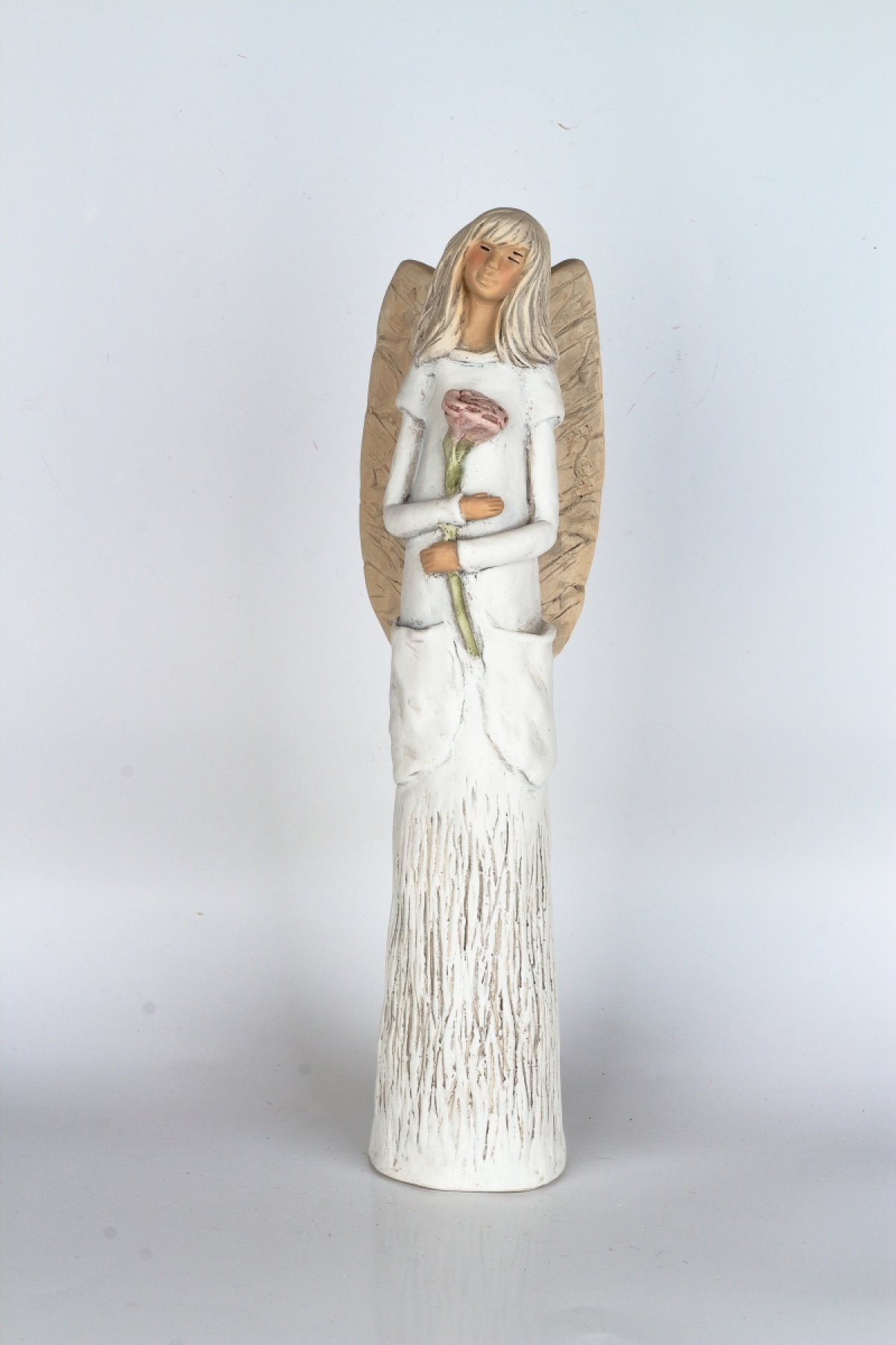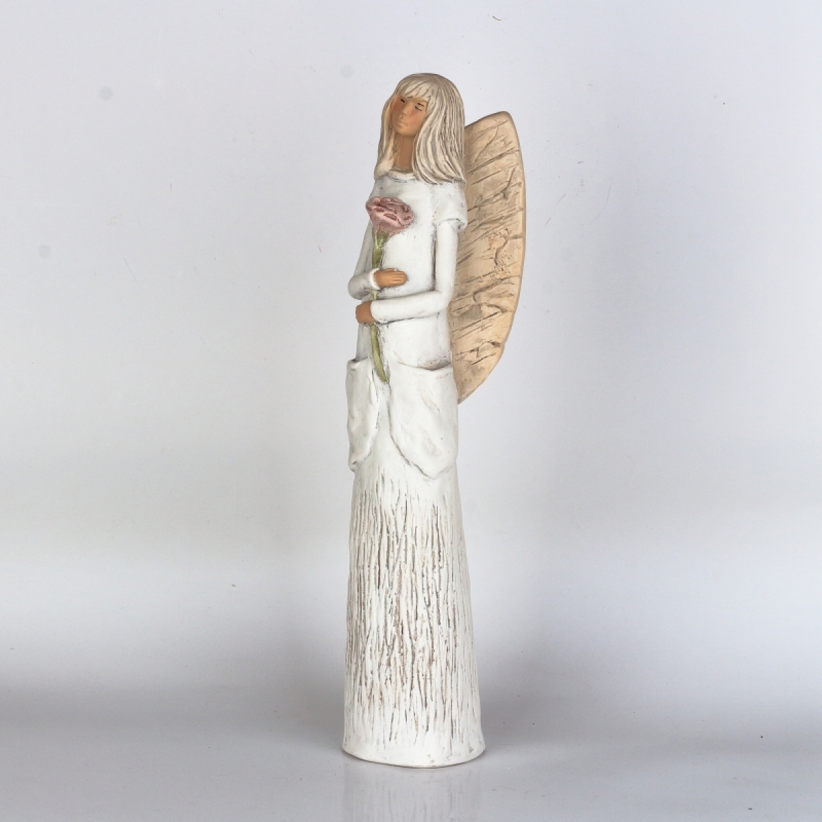 Soška anjela Nežnosť stojaci s ružou 42cm